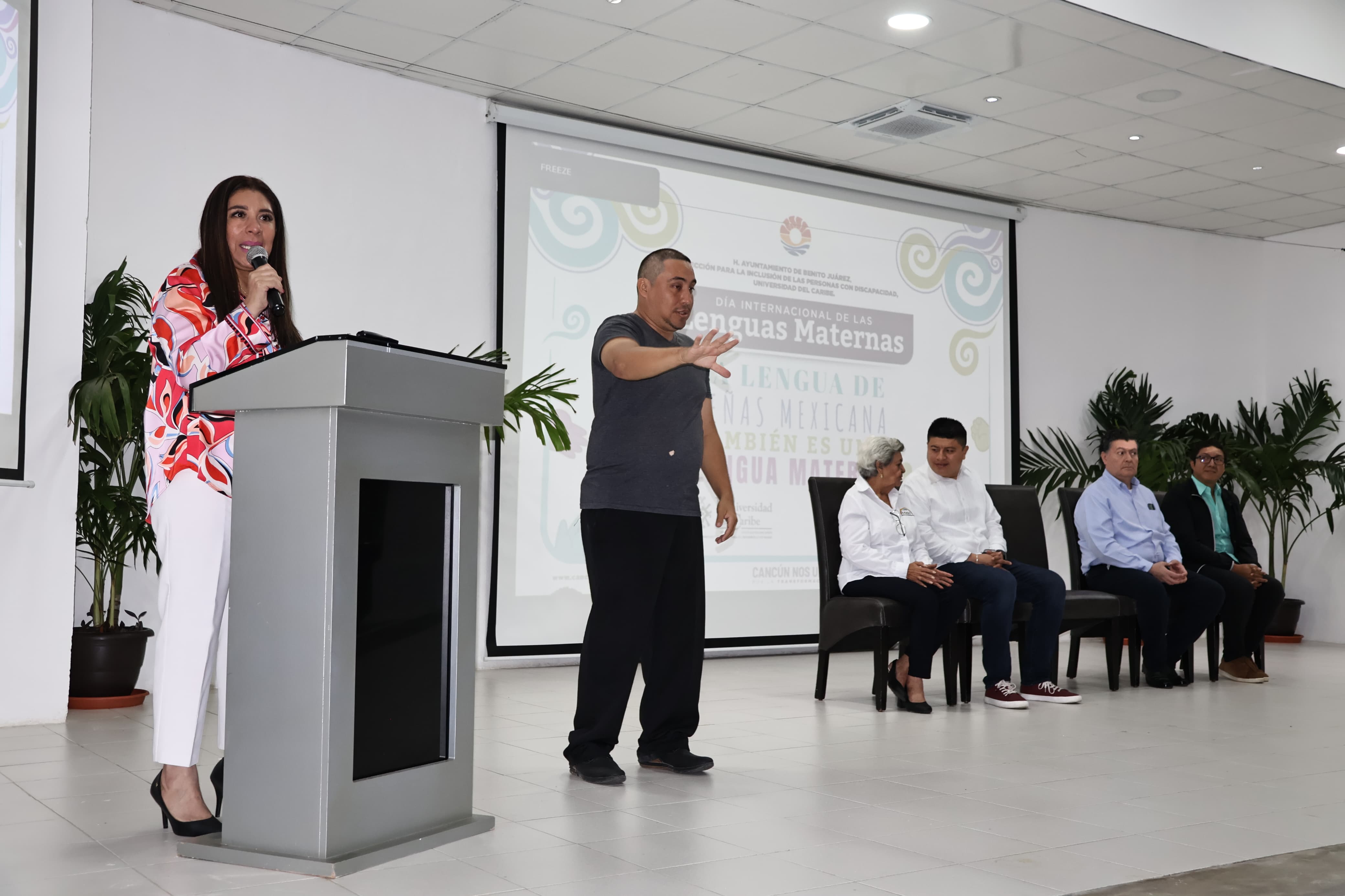 En el Auditorio de la Universidad del Caribe, la funcionaria recordó que la lengua de señas mexicana no solo es un medio de comunicación, es una puerta a la inclusión, una forma de respetar la identidad y los derechos de las personas con discapacidad auditiva.