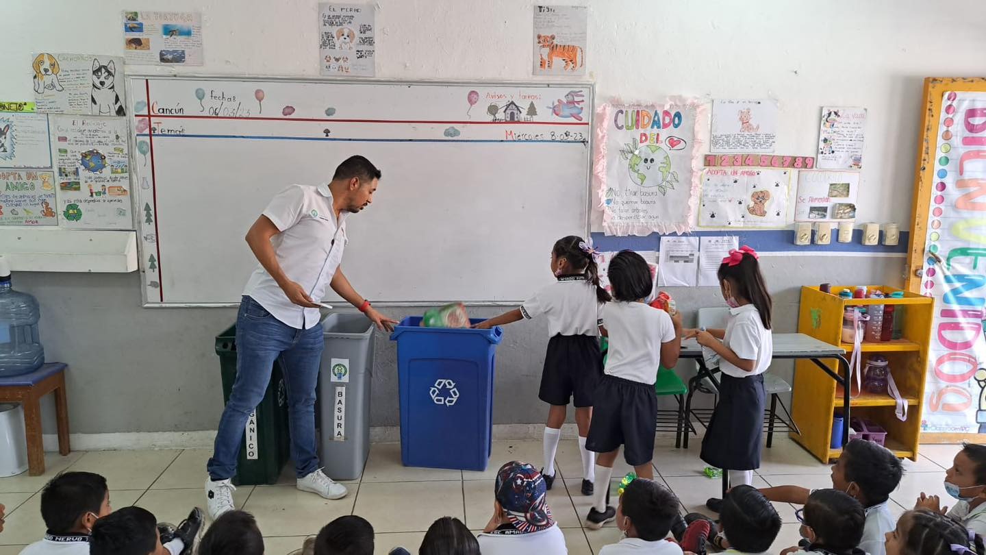 Con estas capacitaciones, durante el mes pasado se alcanzaron a 950 estudiantes y docentes de las escuelas Kabah, José Pablo Moncayo, María Lourdes García y Universidad Anáhuac Cancún, entre otros, quienes se mostraron comprometidos por consolidar una ciudad responsable con el manejo de residuos y el cuidado del medio ambiente.