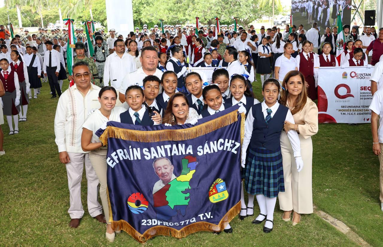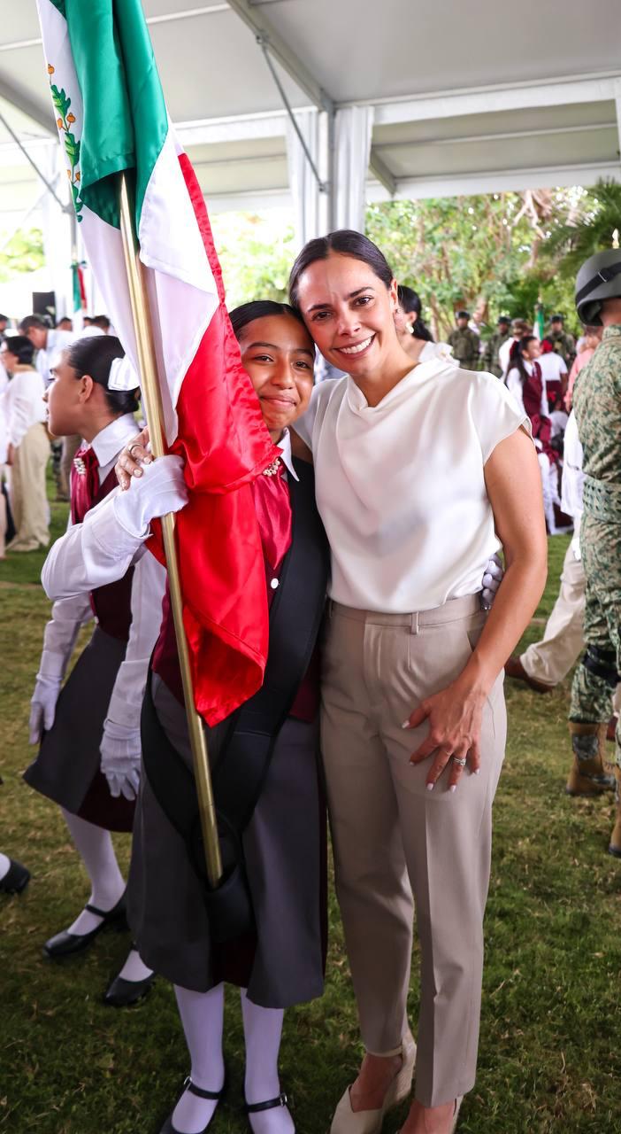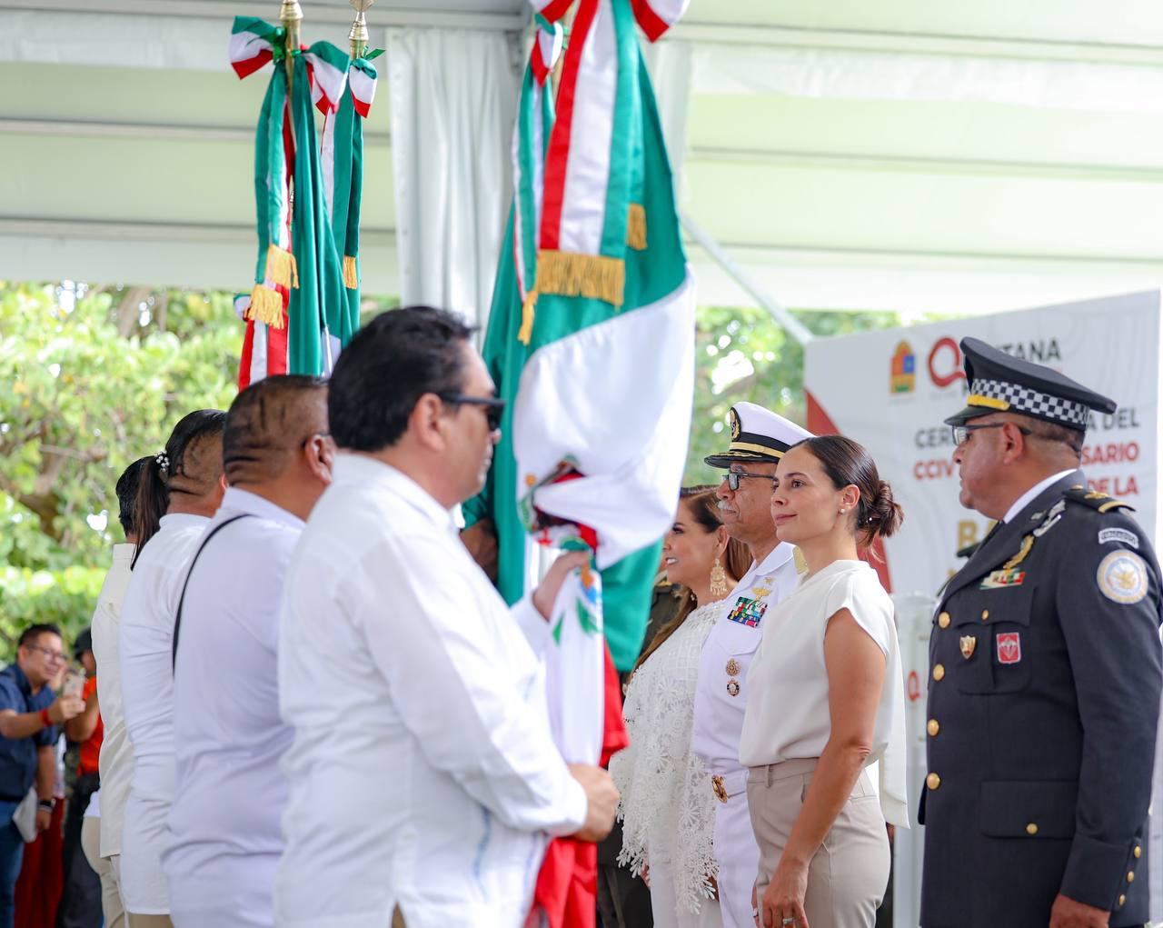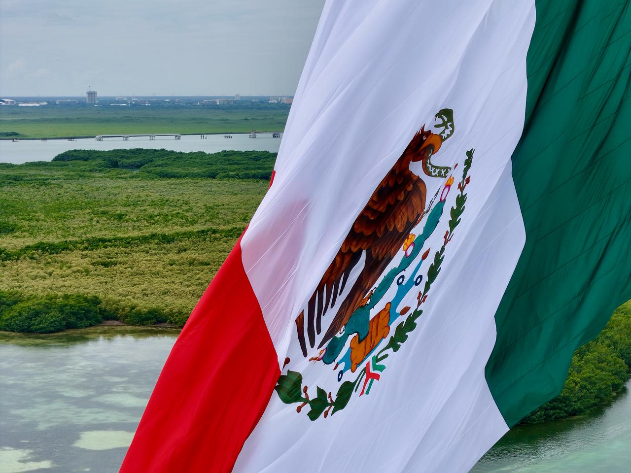 En el marco de la ceremonia cívica por el CCIV Aniversario del Día de la Bandera Nacional, en el Asta Bandera Monumental de la zona hotelera, ubicada en el kilómetro 5.5 del Boulevard Kukulcán, a la que asistieron estudiantes, fuerzas castrenses y servidores públicos, la Primera Autoridad Municipal resaltó la importancia de promover la difusión, conocimiento y respeto a los símbolos patrios, ya que en el Lábaro Patrio se resume la historia de Independencia, libertad, soberanía, democracia, paz y unidad del pueblo mexicano.