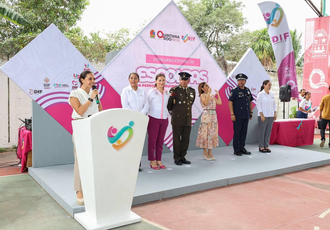Cancún, Q. R., a 24 de febrero de 2025.- En su calidad de municipio anfitrión, se llevó a cabo el “Concurso Estatal de Escoltas de Personas Mayores 2025”, donde la Presidenta Municipal, Ana Paty Peralta y la presidenta honoraria del Sistema DIF Quintana Roo, Verónica Lezama Espinosa, premiaron a los ganadores, reconociendo con orgullo la vitalidad y energía de las concursantes, quienes en el marco del Día de la Bandera, promueven e impulsan el respeto a los símbolos patrios y fomentan la sana convivencia.