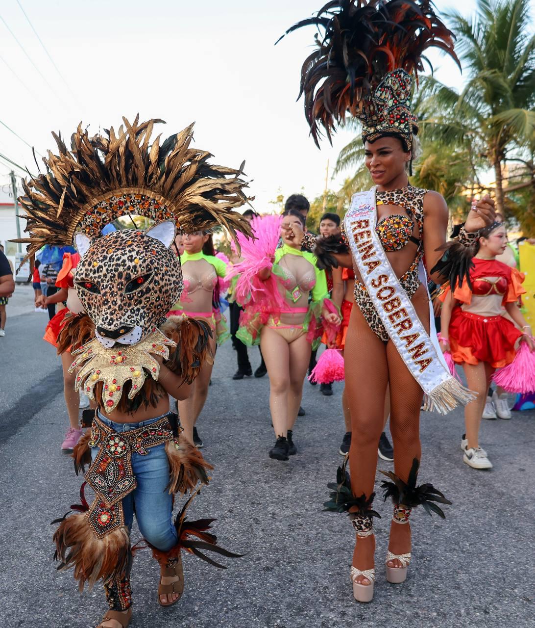 Durante el desfile que recorrió las principales avenidas de Cancún, cientos de familias y porras se aglomeraron en las banquetas para disfrutar del paseo de carros alegóricos en apoyo a los Reyes y Reinas, quienes al ritmo de la tradicional batucada, música moderna, salsa, merengue y cumbia, entre otros géneros musicales, bailaron durante el trayecto en la Avenida Bonampak desde la Avenida Chichén Itzá hasta llegar al Malecón Tajamar.
