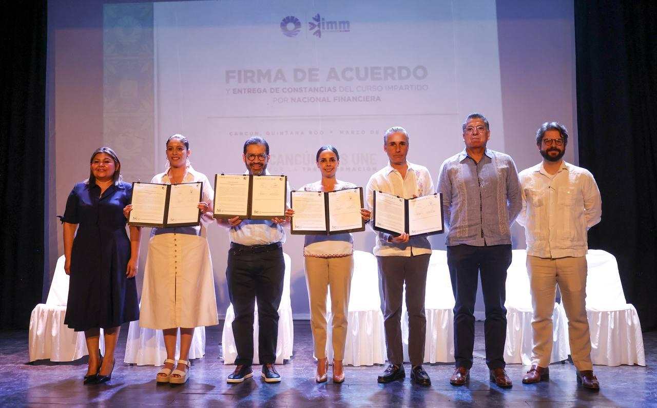 Cancún, Q. R., a 19 de marzo de 2025.- Además de entregar constancias por el curso impartido en beneficio de sus finanzas a través del programa “Ellas Facturan”, la Presidenta Municipal, Ana Paty Peralta, firmó un convenio de colaboración con Nacional Financiera (NAFIN), para seguir impartiendo asesorías que permitan impulsar a mujeres emprendedoras cancunenses y fortalecer la economía de Cancún.