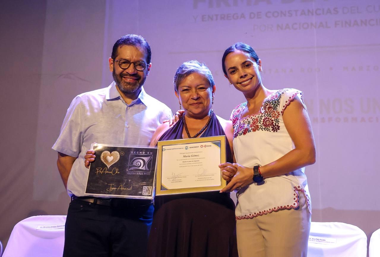 En el Teatro “8 de Octubre” en el que se dieron cita las féminas beneficiadas, Ana Paty Peralta firmó el convenio con el director general de NAFIN y del Banco Nacional de Comercio Exterior (Bancomext), Luis Antonio Ramírez Pineda, que por primera vez se realiza en Benito Juárez con el compromiso mutuo para impartir instrucción presencial o a distancia de manera gratuita para micro, pequeñas y medianas empresas, así como emprendedores.