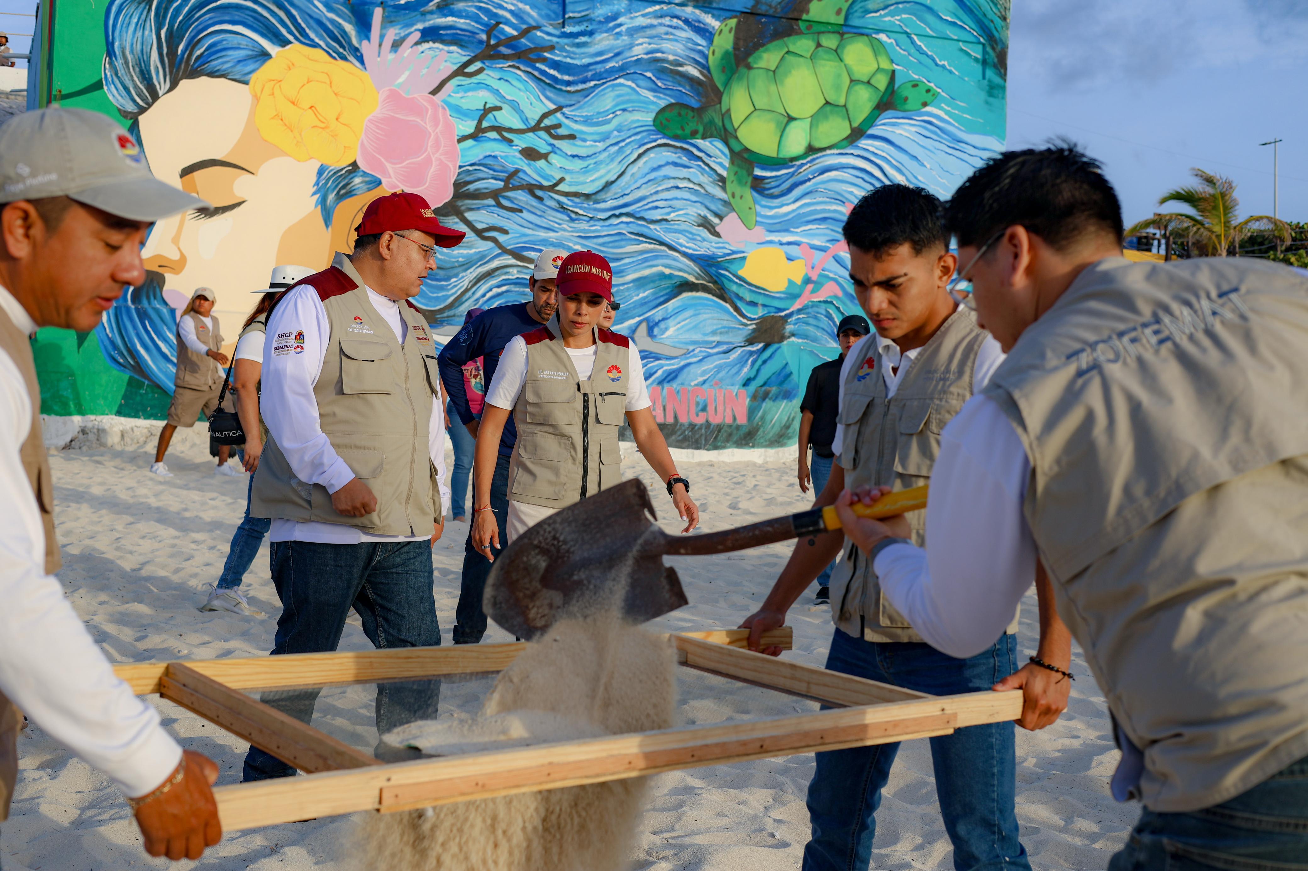 En el kilómetro 17.5 de la Zona Hotelera y con los primeros rayos de sol en el arenal cancunense, personal de las direcciones de la Zona Federal Marítimo Terrestre (ZOFEMAT), Ecología y voluntarios de la iniciativa privada y sociedad civil, se concentraron para llevar trabajo en áreas clave de los arenales y sus alrededores utilizando técnicas de cribado manual para garantizar una limpieza efectiva.