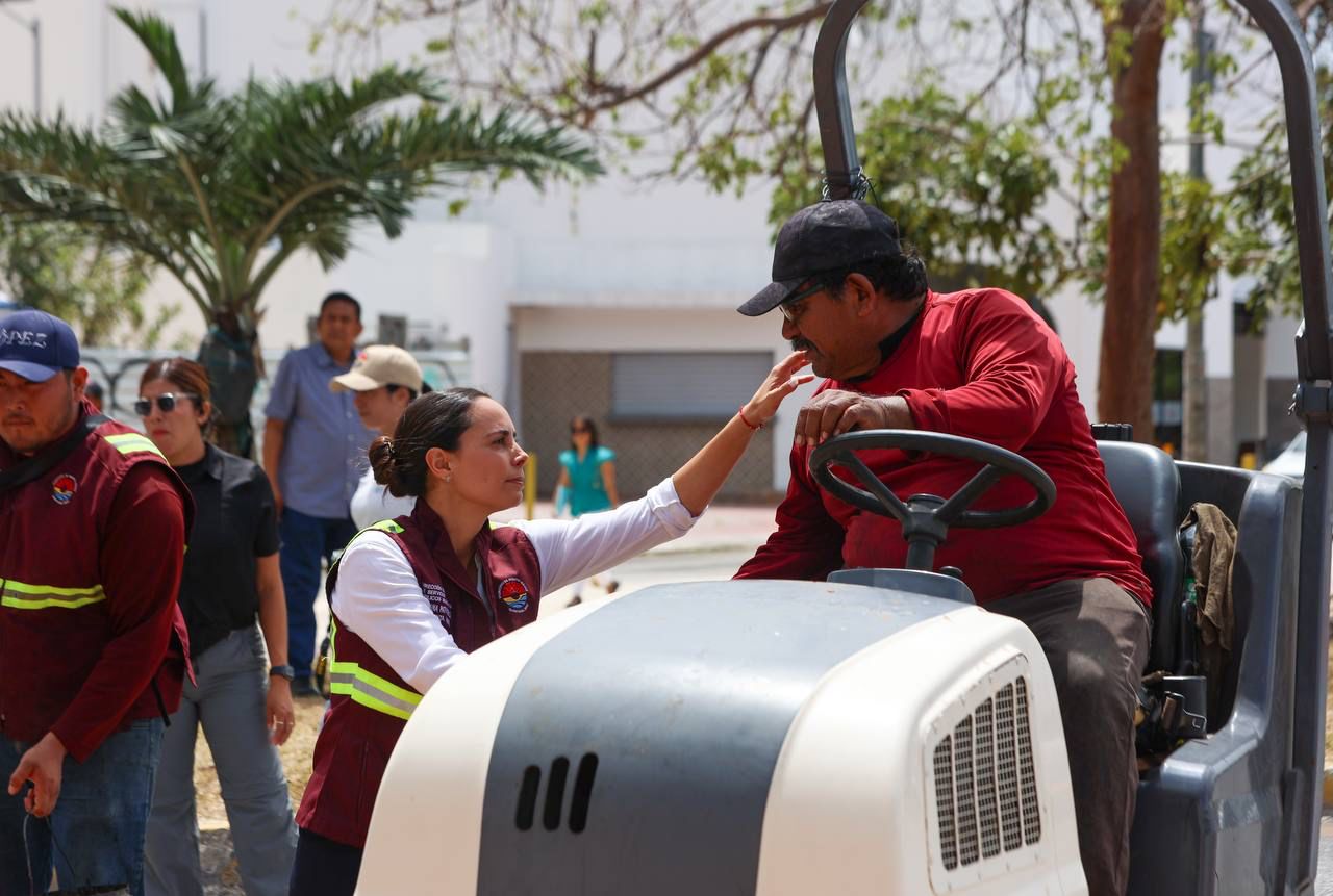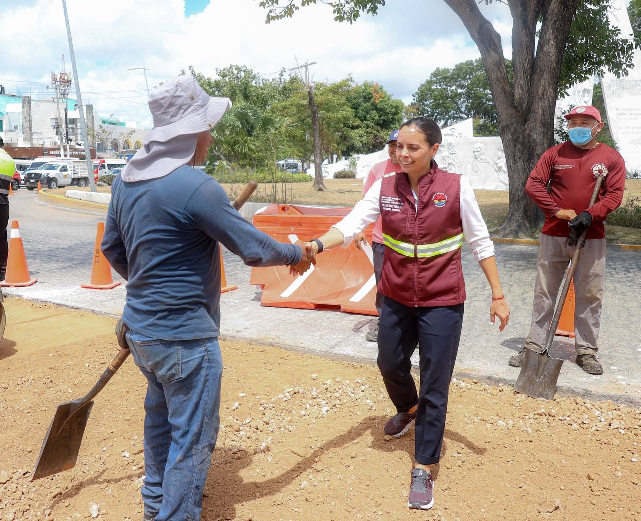 Cancún, Q. R., a 01 de abril de 2025.- La Presidenta Municipal, Ana Paty Peralta, supervisó los trabajos de mantenimiento a la vialidad en la Glorieta de la Historia de México, que registran un avance del 80 por ciento, para beneficio de miles de automovilistas que transitan diariamente por ese punto emblemático del centro de la ciudad, ubicado entre las avenidas Tulum y Uxmal.