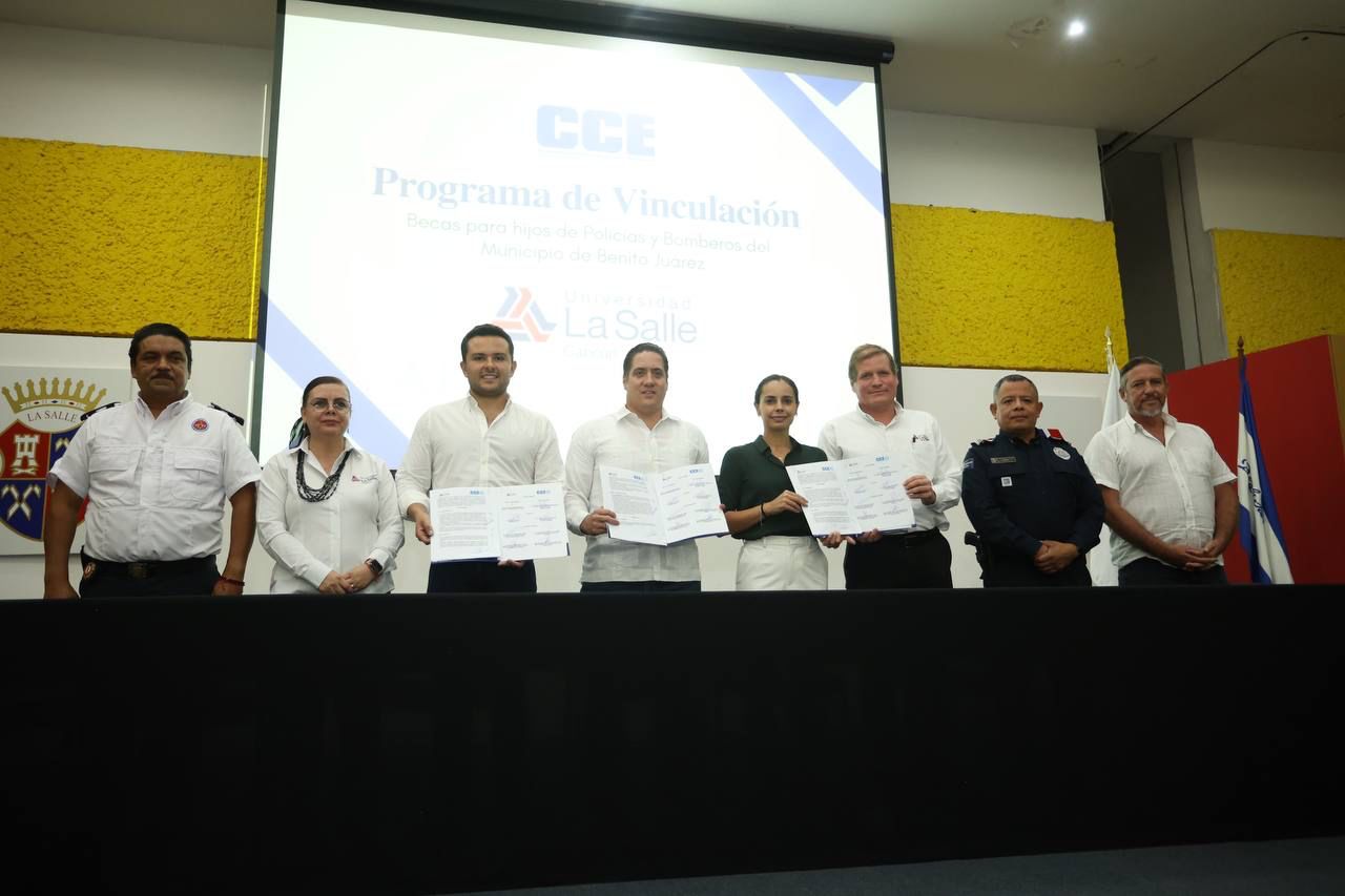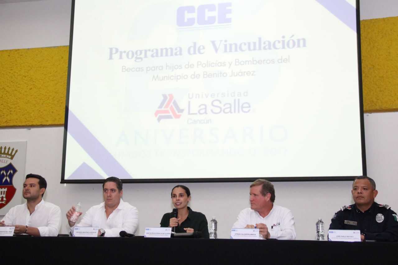 Por su parte, el presidente del Consejo Coordinador Empresarial del Caribe, Eduardo Martínez González, aseguró que en un esfuerzo por reconocer la labor de los elementos de la Secretaría de Seguridad Pública y el H. Cuerpo de Bomberos, se crea este programa de vinculación que permite cinco becas gratuitas a los hijos de los elementos de esas instituciones que se destaquen por su servicio.
