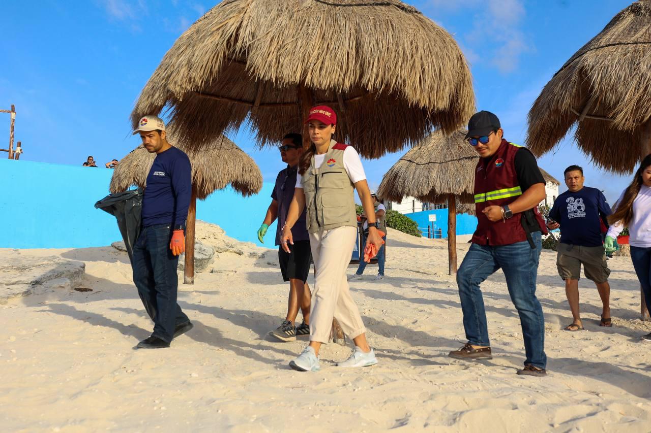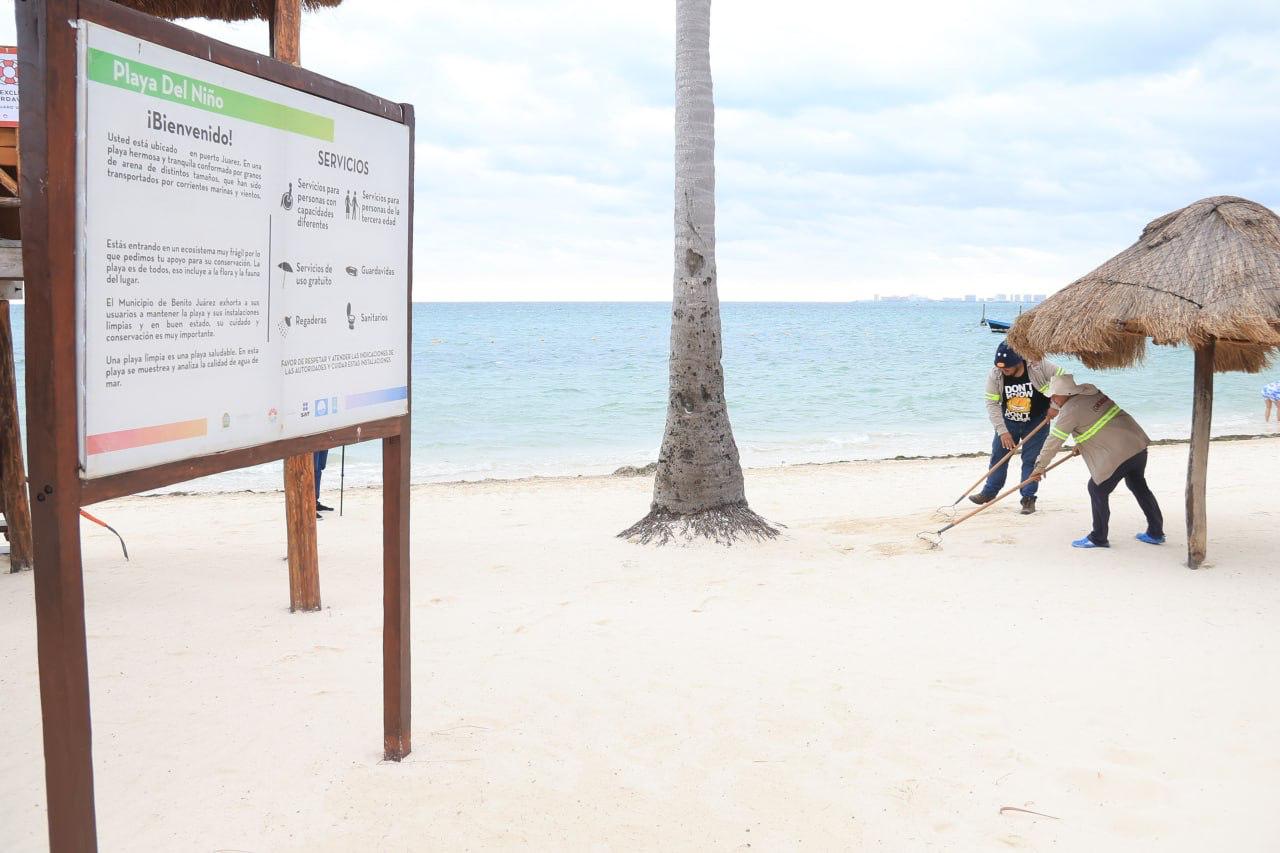diariamente labores de limpieza y retiro de sargazo en las siete playas públicas