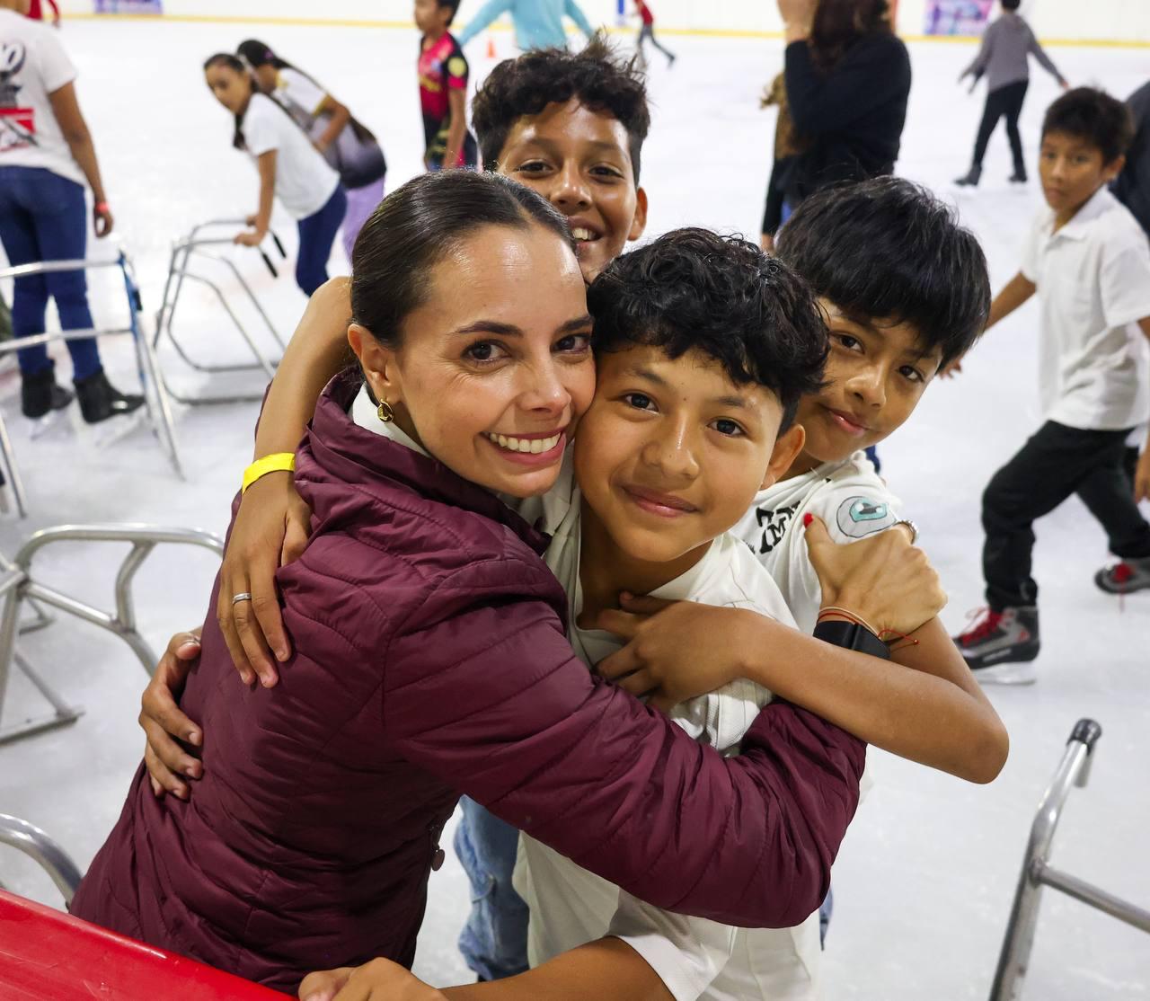 Cancún, Q. R., a 25 de abril de 2025.- Con motivo del Día del Niño, la Presidenta Municipal, Ana Paty Peralta, convivió con deportistas en la pista de hielo Cancún “Happi Arena”, como parte de la prioridad de este gobierno hacia la infancia cancunense.