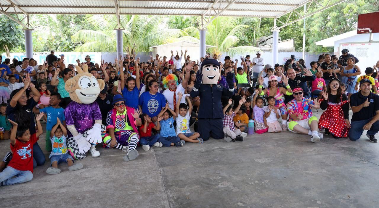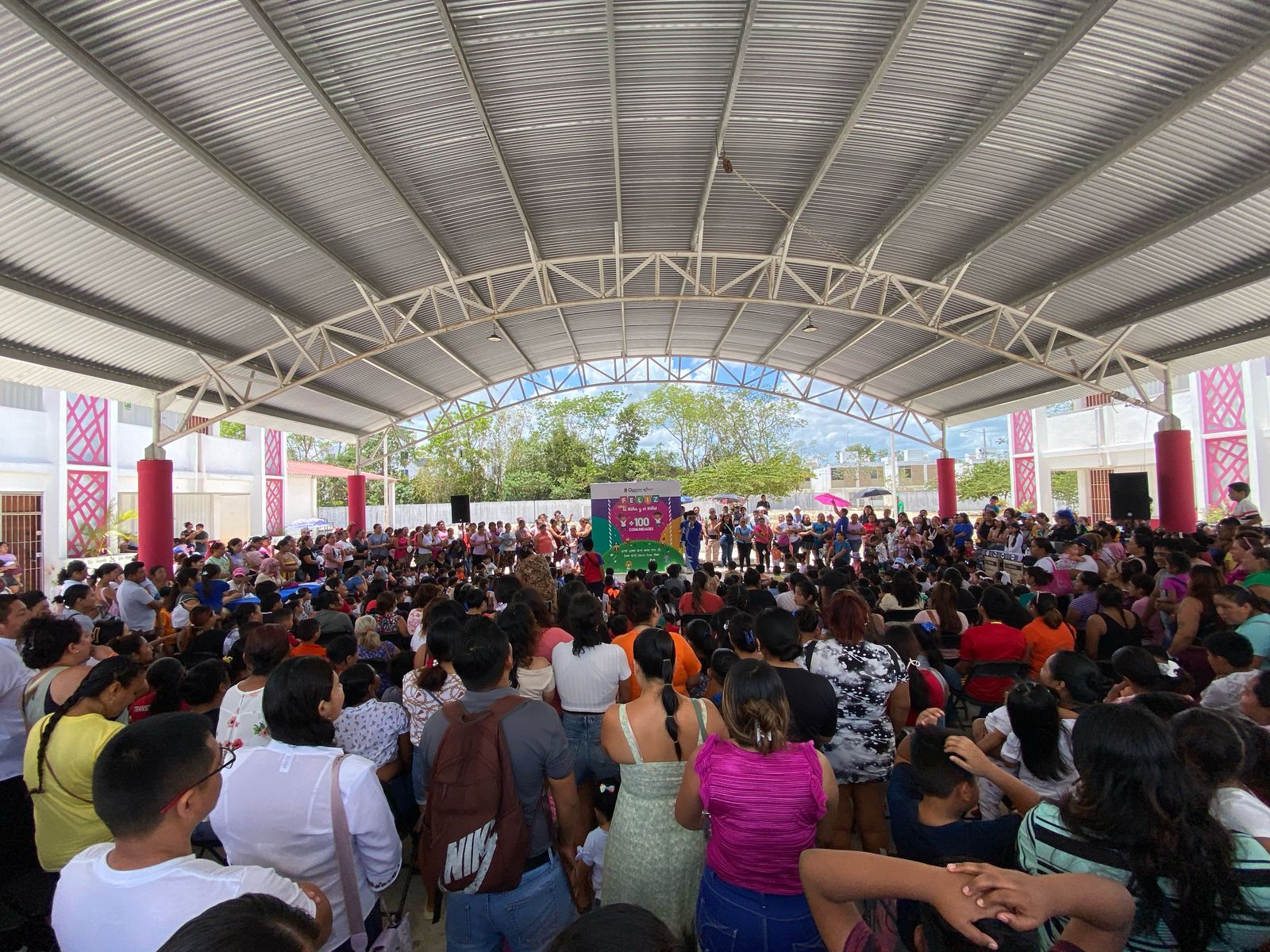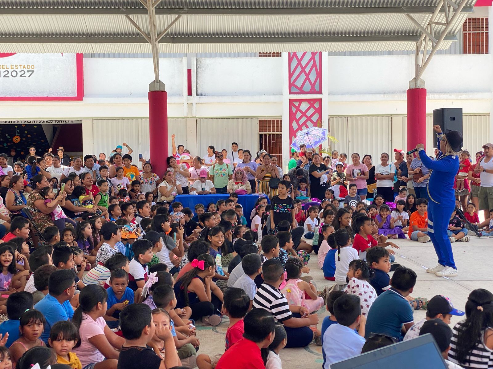 Tras esta acción, las autoridades estatales y municipales acudieron al domo deportivo de la Supermanzana 259 para convivir con las niñas, niños, adolescentes y adultos, donde no faltaron los abrazos y las muestras de cariño.