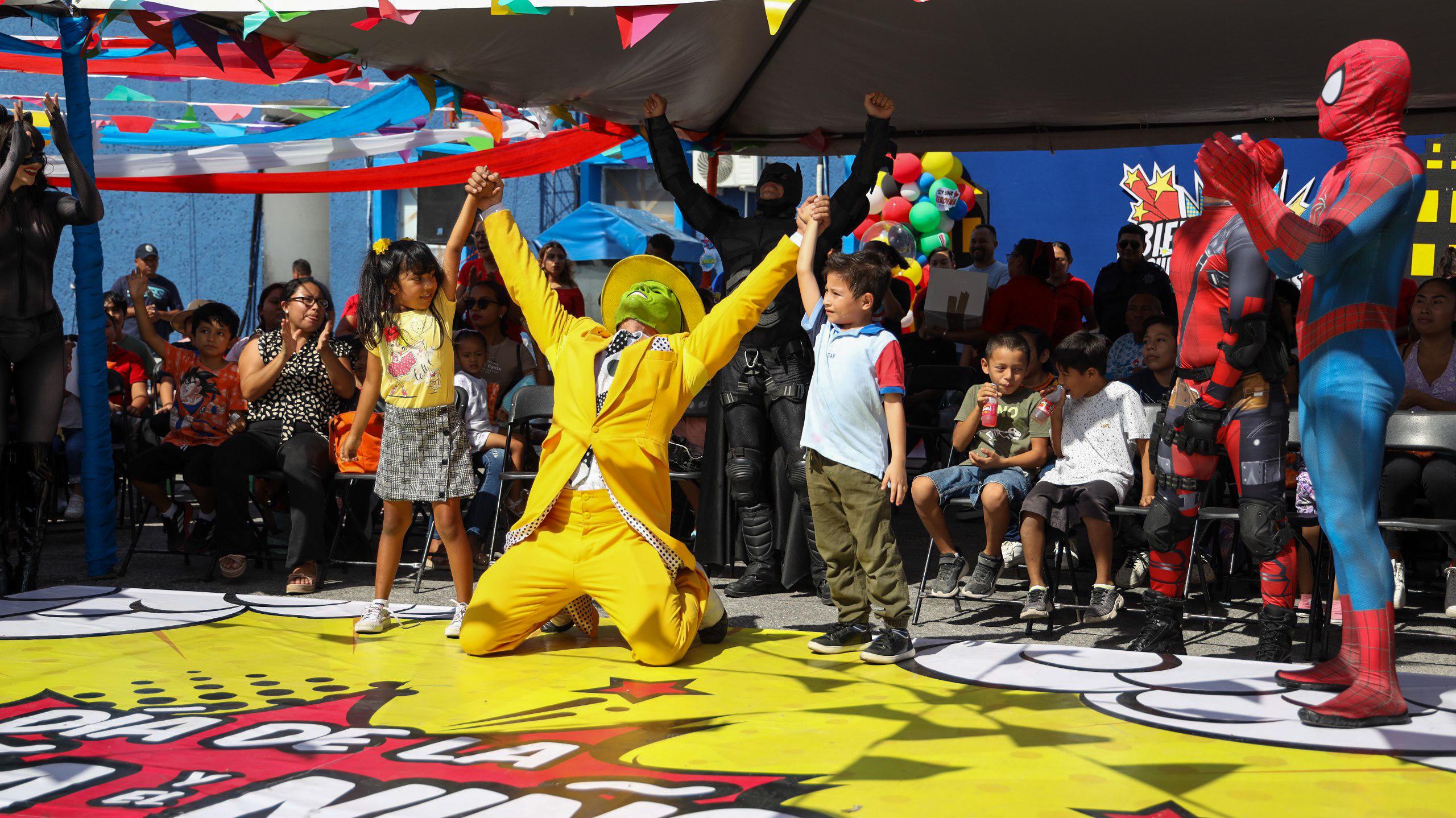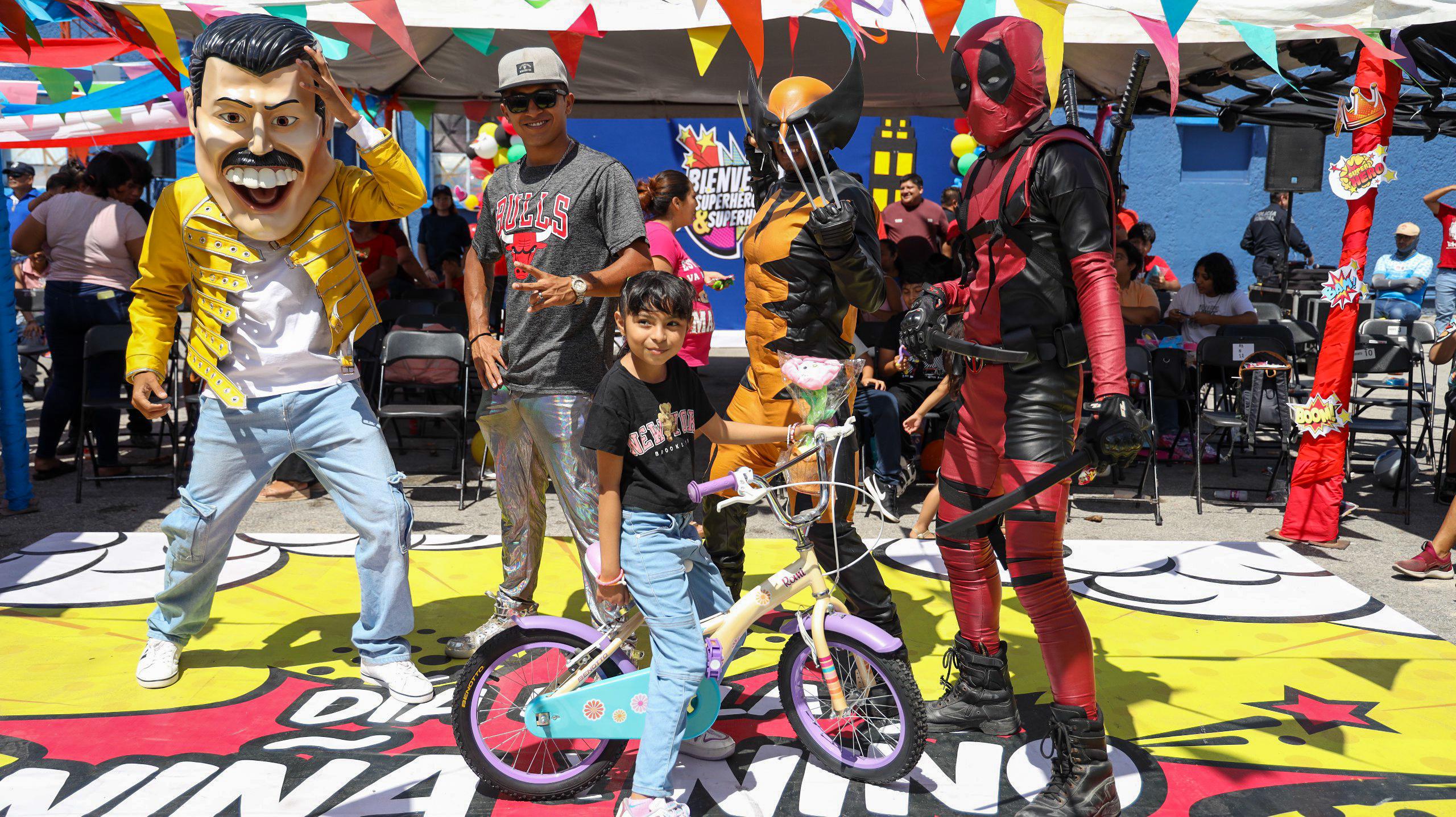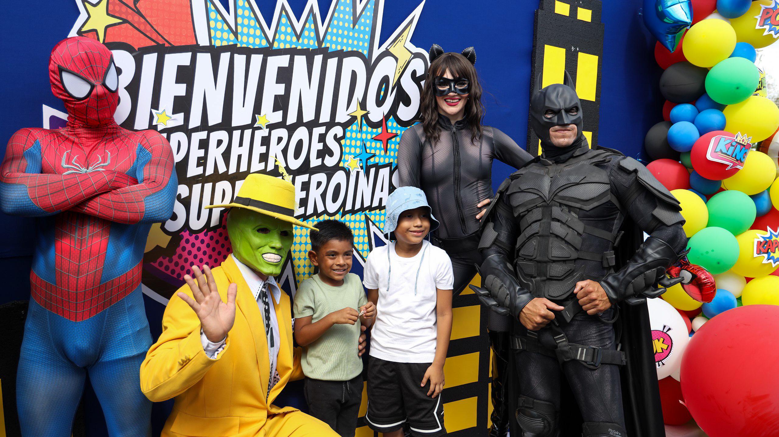 un ambiente festivo con música, juegos y una divertida temática de superhéroes.