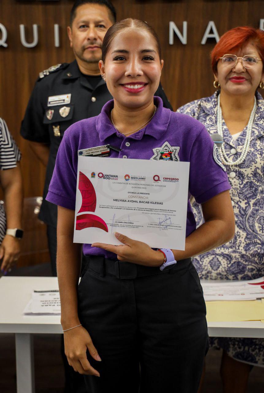 La formación, impartida por la Comisión de Búsqueda de Personas del Estado de Quintana Roo (CBPEQROO) y encabezada por su directora general, licenciada María López Urbina, tuvo como propósito actualizar y difundir dicho protocolo entre elementos de las policías Estatal y Municipal, además de implementar las cédulas de búsqueda como parte de las acciones concretas para agilizar y optimizar este proceso en el municipio.