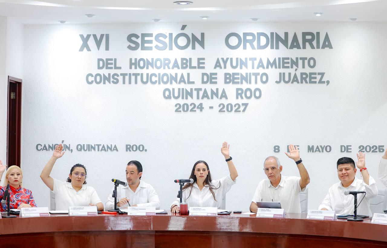 Cancún, Q. R., a 08 de mayo de 2025.- “Hoy es un día muy importante para nuestra ciudad, con la aprobación de este segundo paquete de inversión por 377 millones de pesos, por fin llegó la esperanza a colonias que durante años soñaron con obras”, expresó la Presidenta Municipal, Ana Paty Peralta, al encabezar la Décima Sexta Sesión Ordinaria del Cabildo de Benito Juárez.