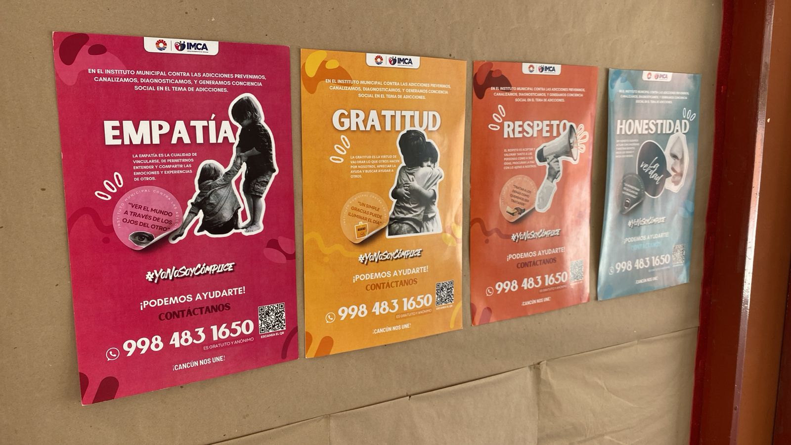 Por lo anterior, en diversas partes de las escuelas se pegan calcomanías con un código QR, que manda directamente al número de WhatsApp 998 483 16 50 de manera anónima, para que la comunidad estudiantil pueda acceder a ayuda profesional sobre la prevención de adicciones.