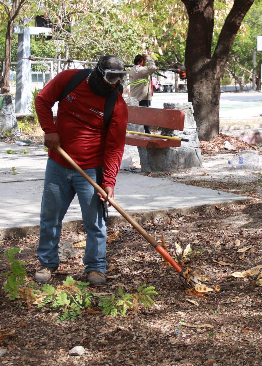 Por ello, las brigadas de dicha dependencia, recorrieron las inmediaciones del parque, ubicado en la Avenida Chac Mool, entre Avenida Miguel Hidalgo y Calle 121 Norte, donde retiraron basura vegetal, además de realizar chapeo; deshierbe y poda, así como limpieza general.