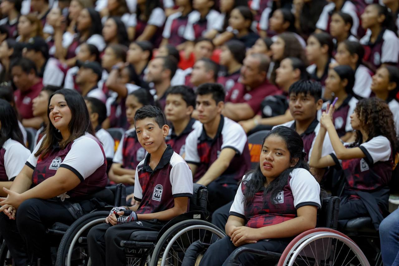 Tras las palabras del presídium, la Presidenta Municipal atestiguó la entrega simultánea del estandarte a la paraatleta Goretti del Carmen Sosa Gamboa y Jerónimo Abogado Irish Stephenson, con el que se demuestra la inclusión en el ámbito deportivo.