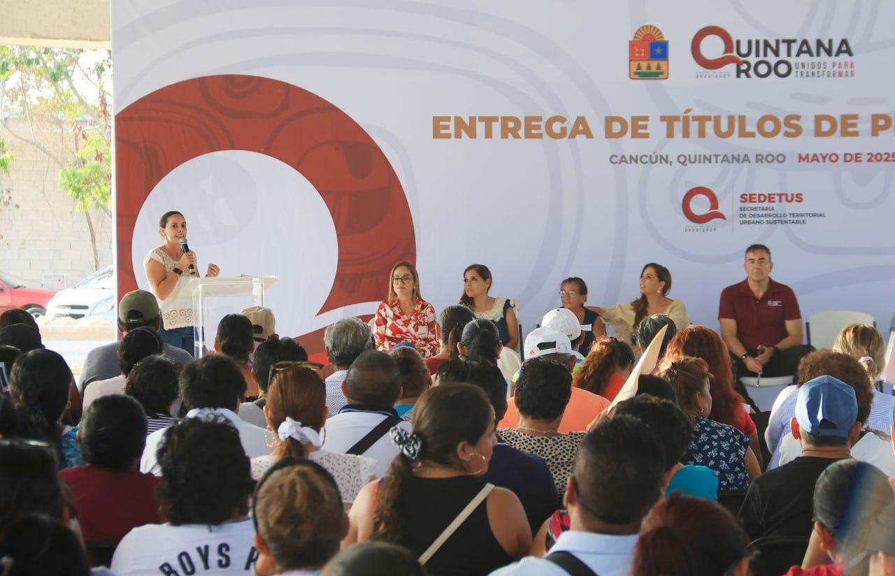 Cancún, Q. R. a 21 de mayo de 2025.- En un acto de justicia social, la Presidenta Municipal, Ana Paty Peralta y la gobernadora, Mara Lezama, entregaron 270 títulos de propiedad a familias cancunenses que, tras décadas de espera, finalmente obtienen certeza jurídica sobre su patrimonio.