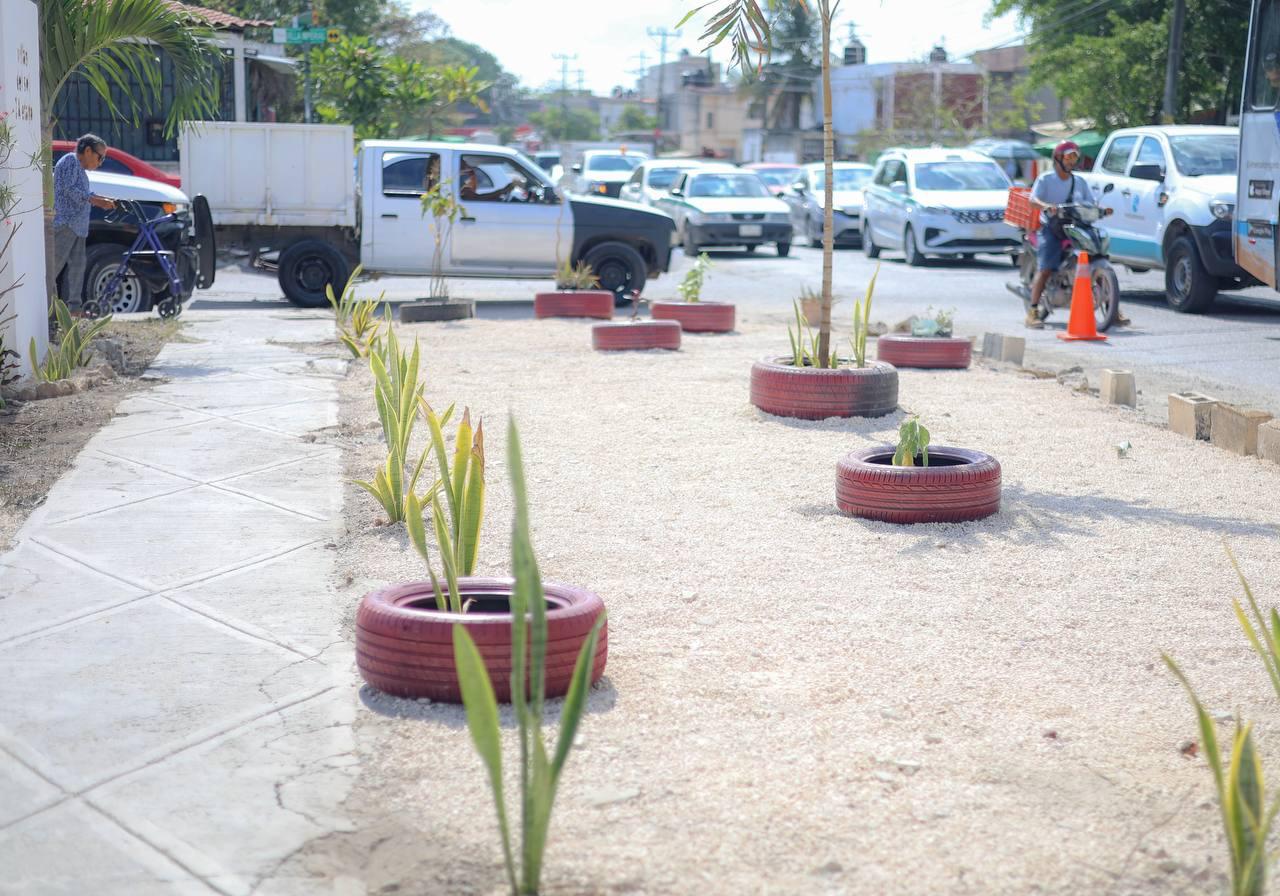 Acompañada por los habitantes de la zona, la Primera Autoridad Municipal constató la remodelación y embellecimiento del área ubicada en la intersección de la Avenida Miguel Hidalgo (Ruta 5) y Calle Villa Imperial, a cargo del organismo descentralizado Solución Integral de Residuos Sólidos (SIRESOL), gracias a numerosas plantas colocadas en maceteros que fueron elaboradas con llantas recicladas para que luciera hermoso y limpio.