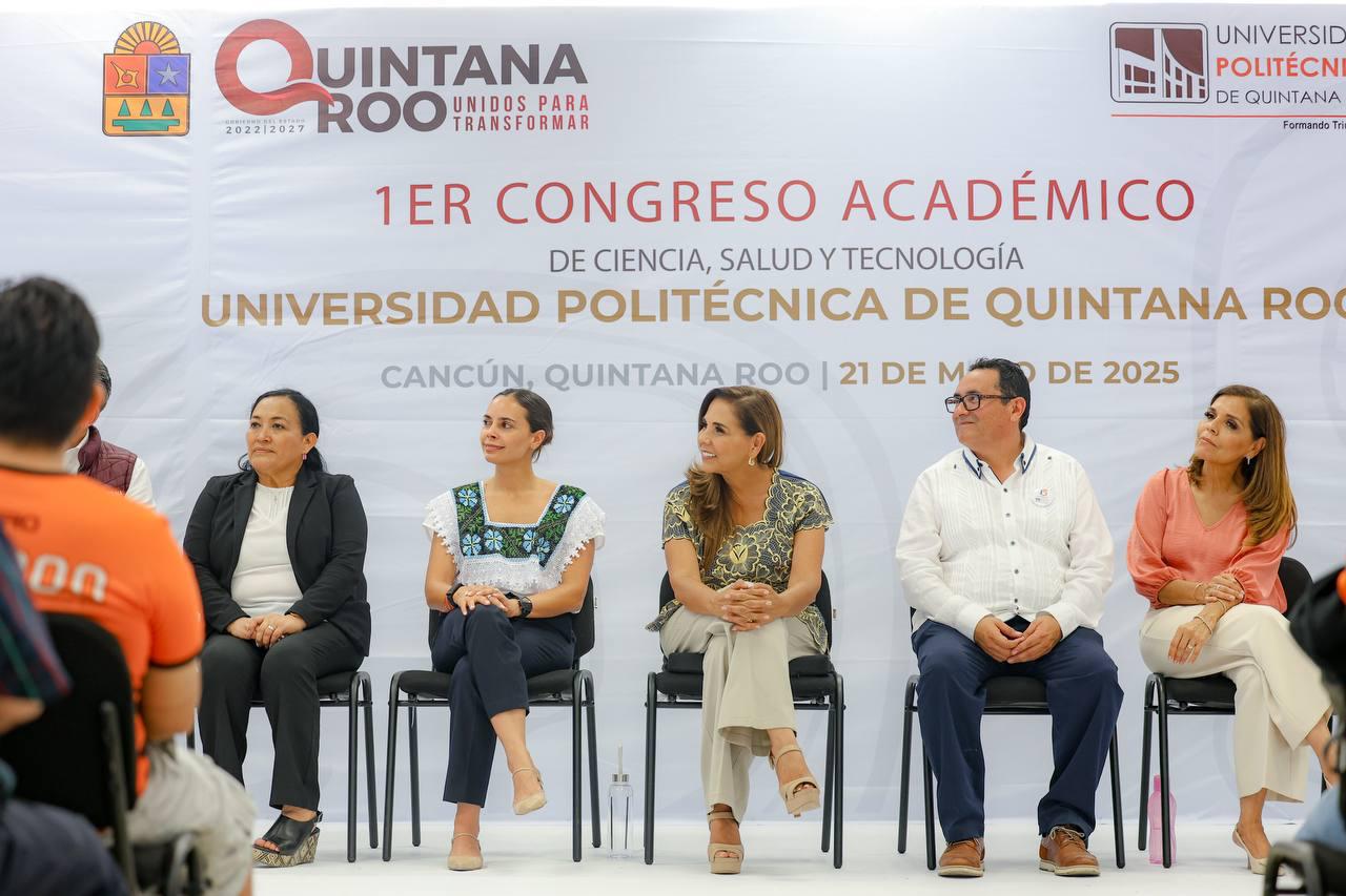 Cancún, Q. R., a 26 de mayo de 2025.- La Presidenta Municipal, Ana Paty Peralta y la gobernadora, Mara Lezama, inauguraron el Primer Congreso Académico de Ciencia, Salud y Tecnología, en el marco del XV Aniversario de la Universidad Politécnica de Quintana Roo (UPQROO), donde refrendaron su compromiso por continuar fortaleciendo el sector educativo.