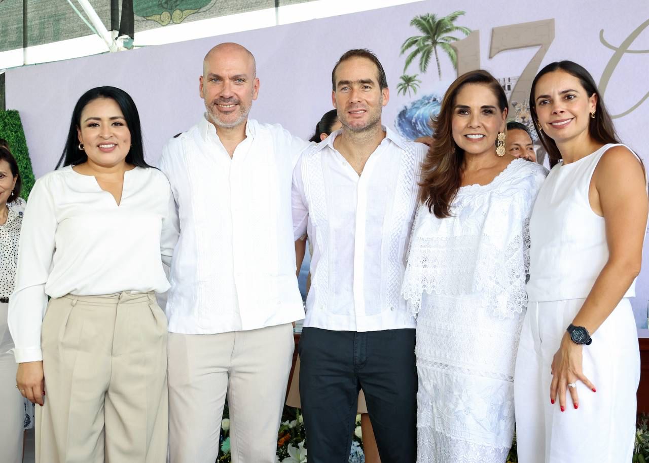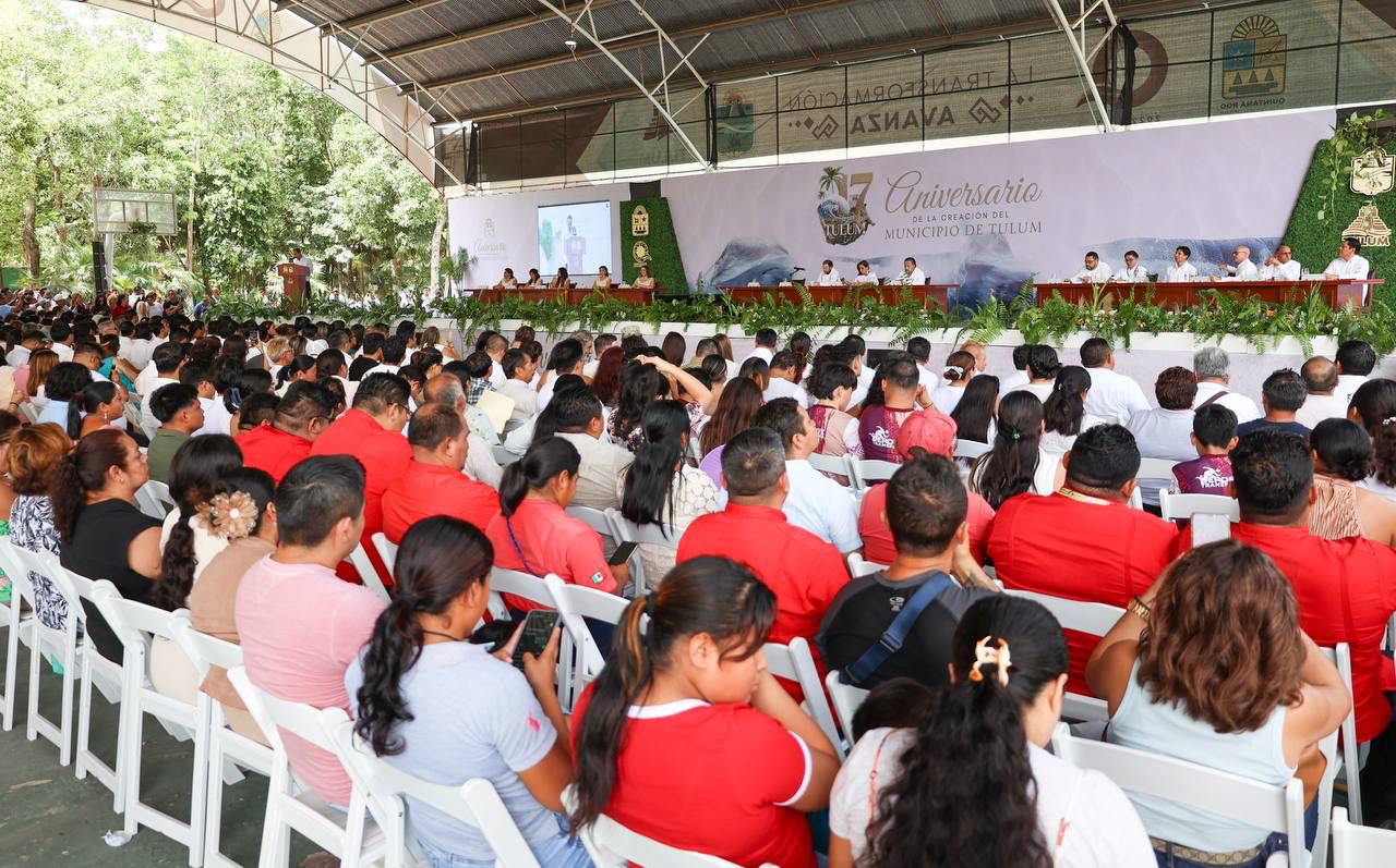 “Desde Cancún, le mandamos mis más sinceras felicitaciones a todo el pueblo de Tulum por su Décimo Séptimo Aniversario de su creación, un pueblo unido, un pueblo guerrero, conocido ya mundialmente”, expresó la Alcaldesa, en el evento encabezado por la gobernadora, Mara Lezama y el Presidente Municipal de Tulum, Diego Castañón Trejo, quienes recibieron a los invitados de honor en el Domo Doble de la Unidad Deportiva de Tulum.