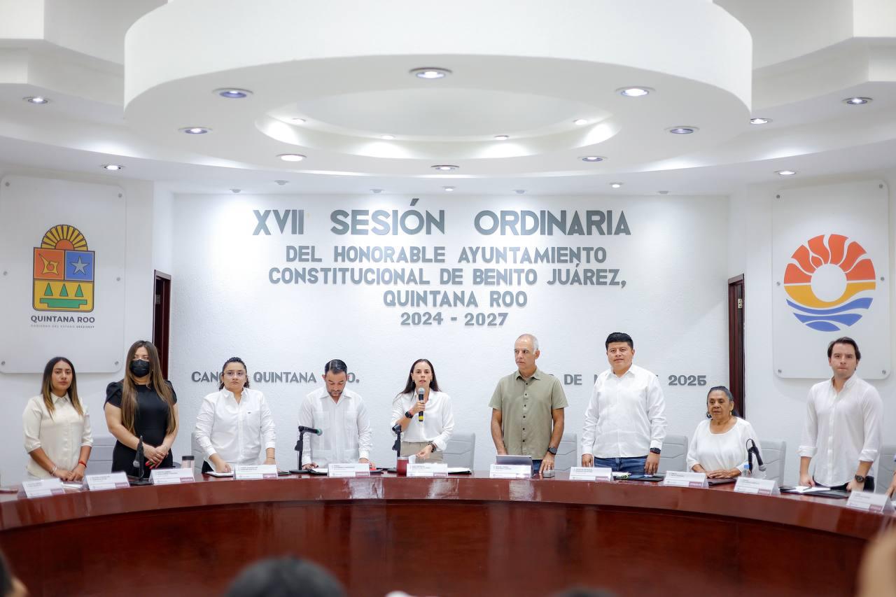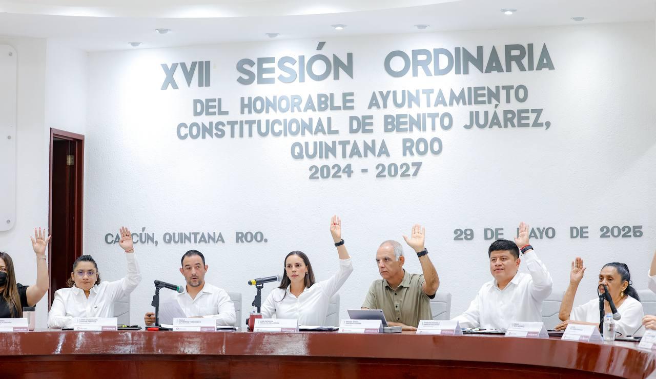 Cancún, Q. R., a 29 de mayo de 2025.- Por iniciativa de la Presidenta Municipal, Ana Paty Peralta, el Cabildo de Benito Juárez aprobó por unanimidad modificaciones a diversos artículos del Bando de Gobierno y Policía en materia de horarios de funcionamiento de establecimientos comerciales y de servicios, principalmente aquellos dedicados a la venta y consumo de bebidas alcohólicas, a efecto de preservar el orden público, la seguridad ciudadana y la tranquilidad de las familias cancunenses.