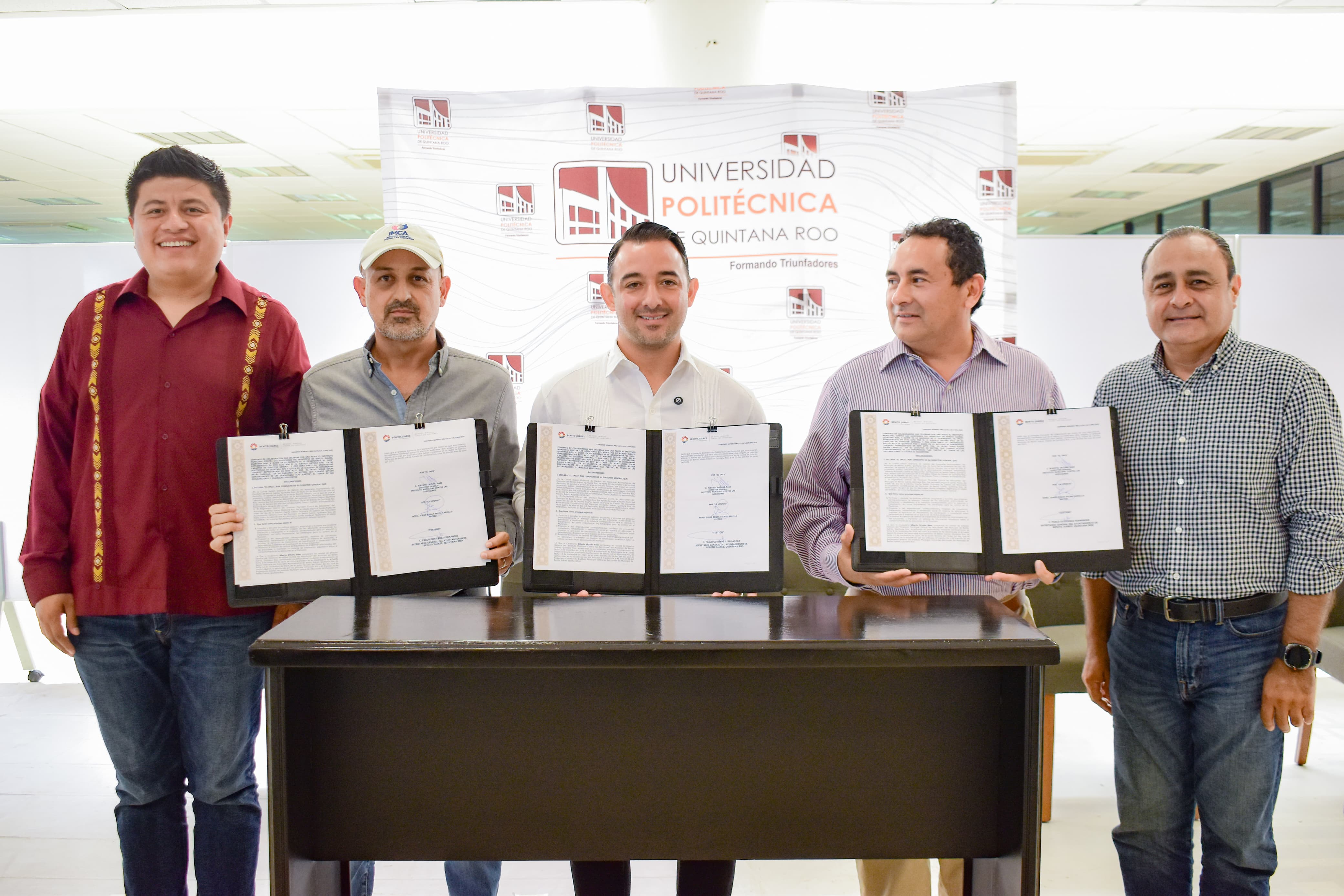 Cancún, Q. R., a 09 de junio de 2025.- Con el firme propósito de seguir construyendo una ciudad más segura, justa y con oportunidades para todas y todos, el secretario general del Ayuntamiento de Benito Juárez, Pablo Gutiérrez Fernández, representación de la Presidenta Municipal, Ana Paty Peralta, encabezó la firma de convenio de colaboración entre el Instituto Municipal Contra las Adicciones (IMCA) y la Universidad Politécnica de Quintana Roo.