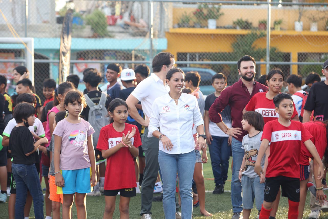 Cancún, Q. R., a 12 de julio de 2023.- Conviviendo con jóvenes deportistas y familias de la Supermanzana 103, la tarde de este martes la Presidenta Municipal, Ana Paty Peralta, encabezó la quinta edición de “El Fútbol Nos Une”, programa dirigido a la proximidad de las autoridades con la ciudadanía, acercando diversas opciones de entretenimiento, recreación, información, servicios y esparcimiento.