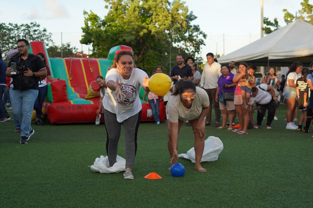 Durante el evento, Ana Paty Peralta recorrió los juegos, y actividades instaladas, participando junto a las y los jóvenes en dinámicas como: cuatro esquinas, Exatlón de los famosos, gato, tiro al blanco con balones y demás, pasando tiempo de calidad con las familias cancunenses.