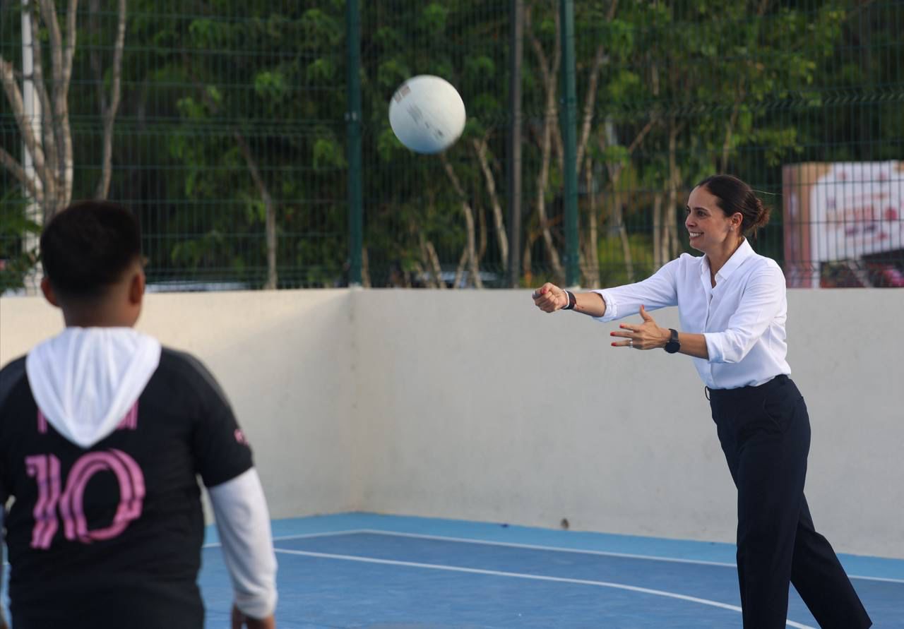 Cancún, Q. R., a 10 de junio de 2025.- “Les reitero nuestro compromiso de continuar impulsando el deporte, las áreas deportivas, espacios recreativos y becas como las que otorgamos para el campamento Tenple Sport Center en Madrid, España, para que cada vez más niñas, niños y jóvenes puedan alcanzar sus sueños”, enfatizó la Presidenta Municipal, Ana Paty Peralta, en la quinta edición del programa “El Futbol Nos Une, Todos por la Paz”.