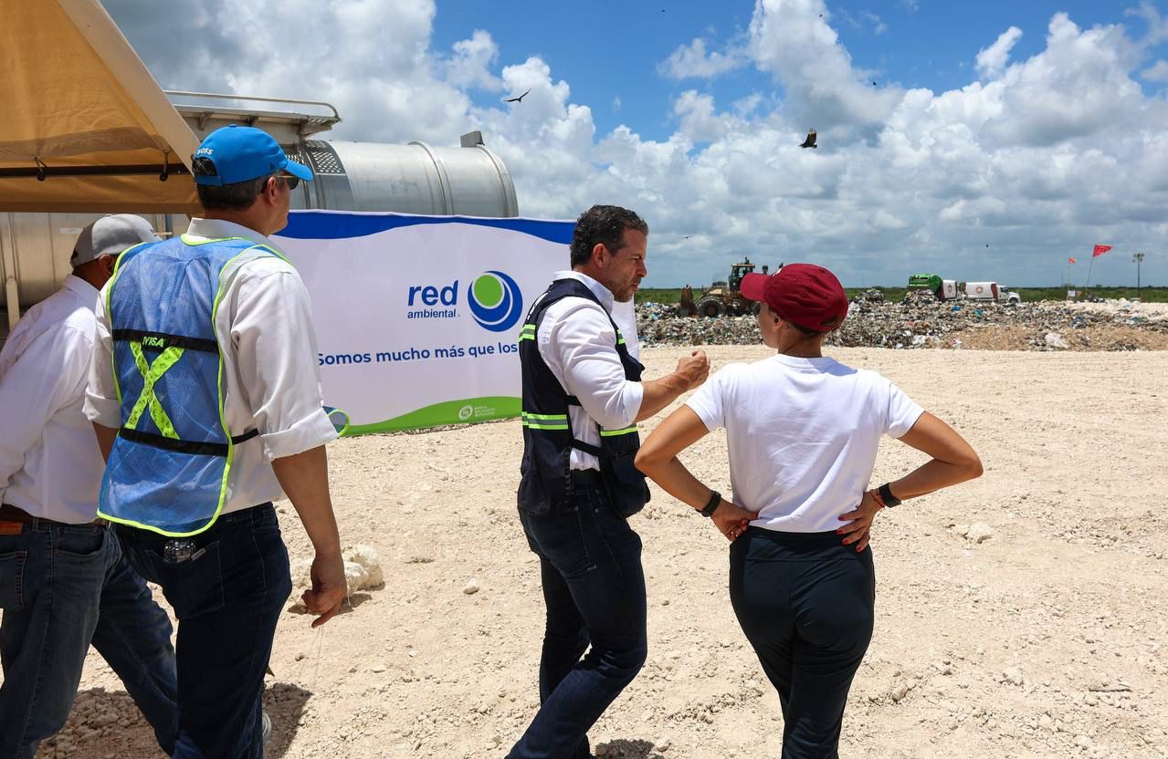 Cancún, Q. R., a 11 de junio de 2025.- A fin de verificar el correcto manejo y disposición final de los residuos que se generan en la ciudad, la Presidenta Municipal, Ana Paty Peralta y el CEO de Red ambiental, Horacio Guerra Marroquín, realizaron un recorrido de reconocimiento por la Base de Operaciones de dicha empresa, así como de la celda emergente del Centro Integral de Procesamiento de Residuos (Cipres), ubicada en la parcela 175, en donde se han procesado más de 650 mil toneladas.