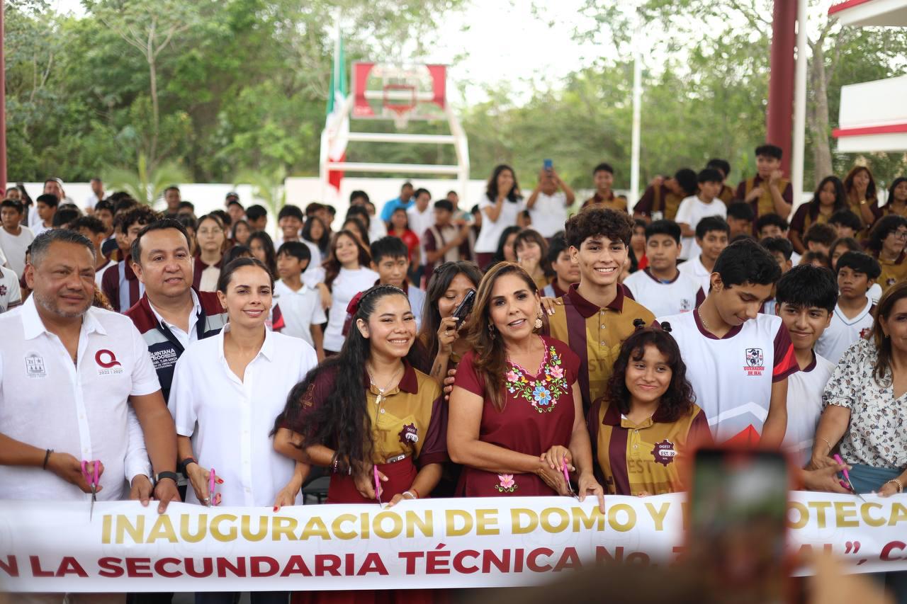Cancún, Q. R., a 19 de junio de 2025.- La Presidenta Municipal, Ana Paty Peralta, refrendó su total respaldo al compromiso del fortalecimiento a la infraestructura educativa en la ciudad por parte del Gobierno del Estado, al acompañar a la Gobernadora, Mara Lezama, a la inauguración de un domo y biblioteca en la Escuela Secundaria Técnica No. 39 “Ikal”, ubicada en la Supermanzana 260.