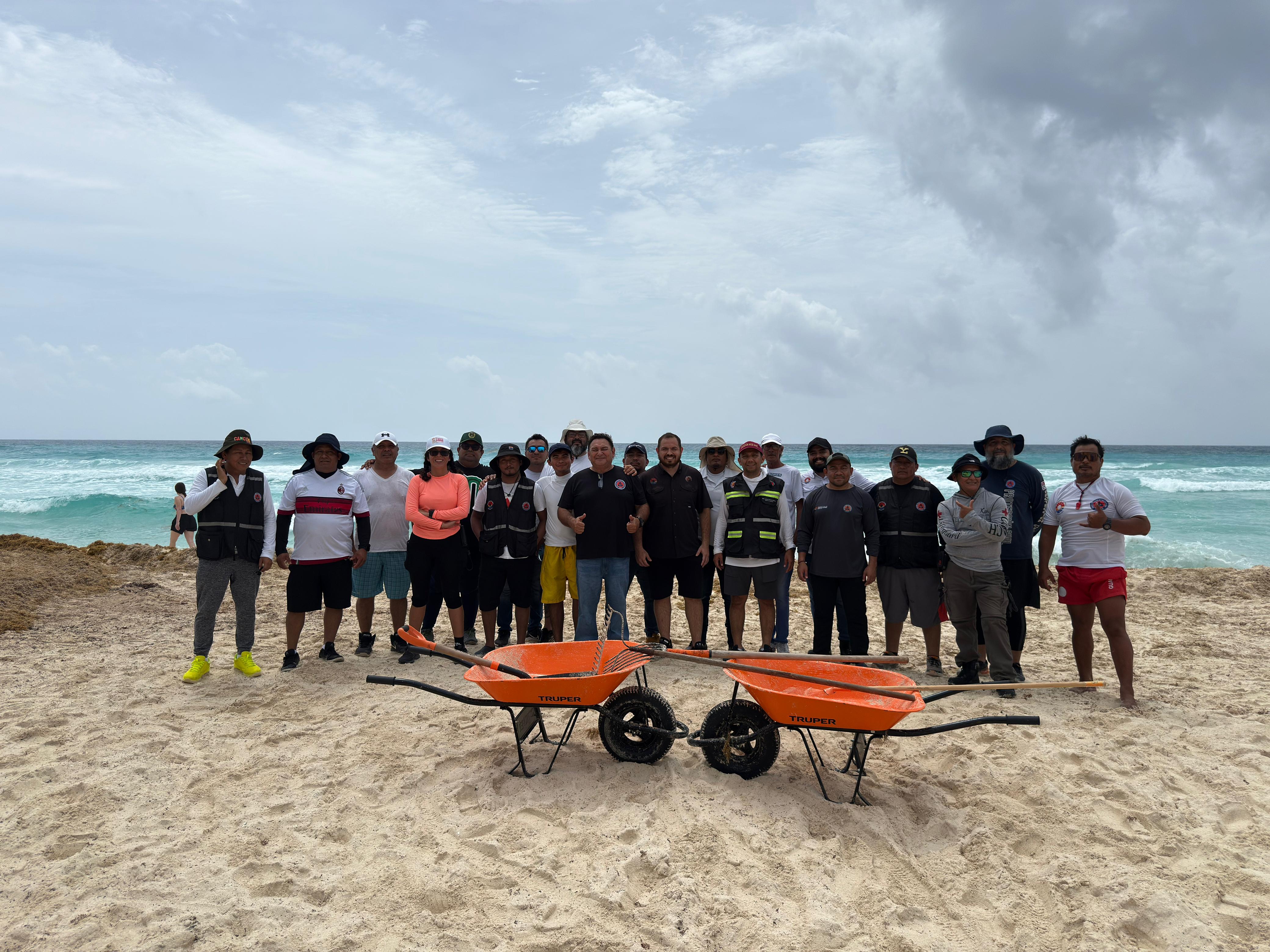 Cancún, Q. R., a 19 de junio de 2025.- Con el firme compromiso de seguir manteniendo las 11 playas públicas de Cancún en condiciones óptimas para los turistas y locales, el Ayuntamiento de Benito Juárez que encabeza la Presidenta Municipal, Ana Paty Peralta, puso en marcha el despliegue de 400 personas en la limpieza del sargazo y en general, logrando mantener los arenales libres de esta macroalga.