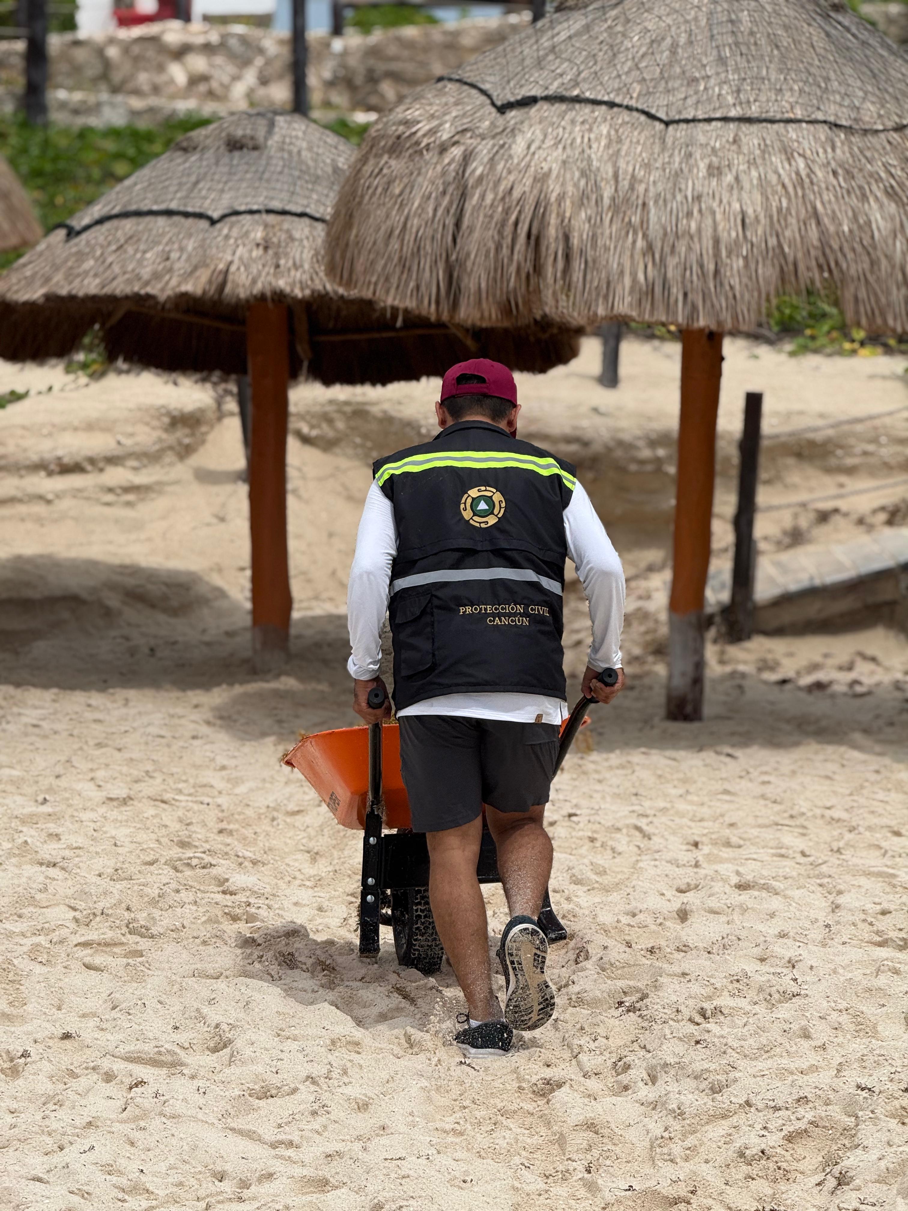 Desde las 04:00 horas, el personal de las diferentes dependencias emprendió los trabajos de la limpieza de playas para que estén en las mejores condiciones y así los turistas puedan ir a bañarse o bien, tomarse fotografías del recuerdo en las emblemáticas letras: Cancún, ubicadas en playa Delfines.