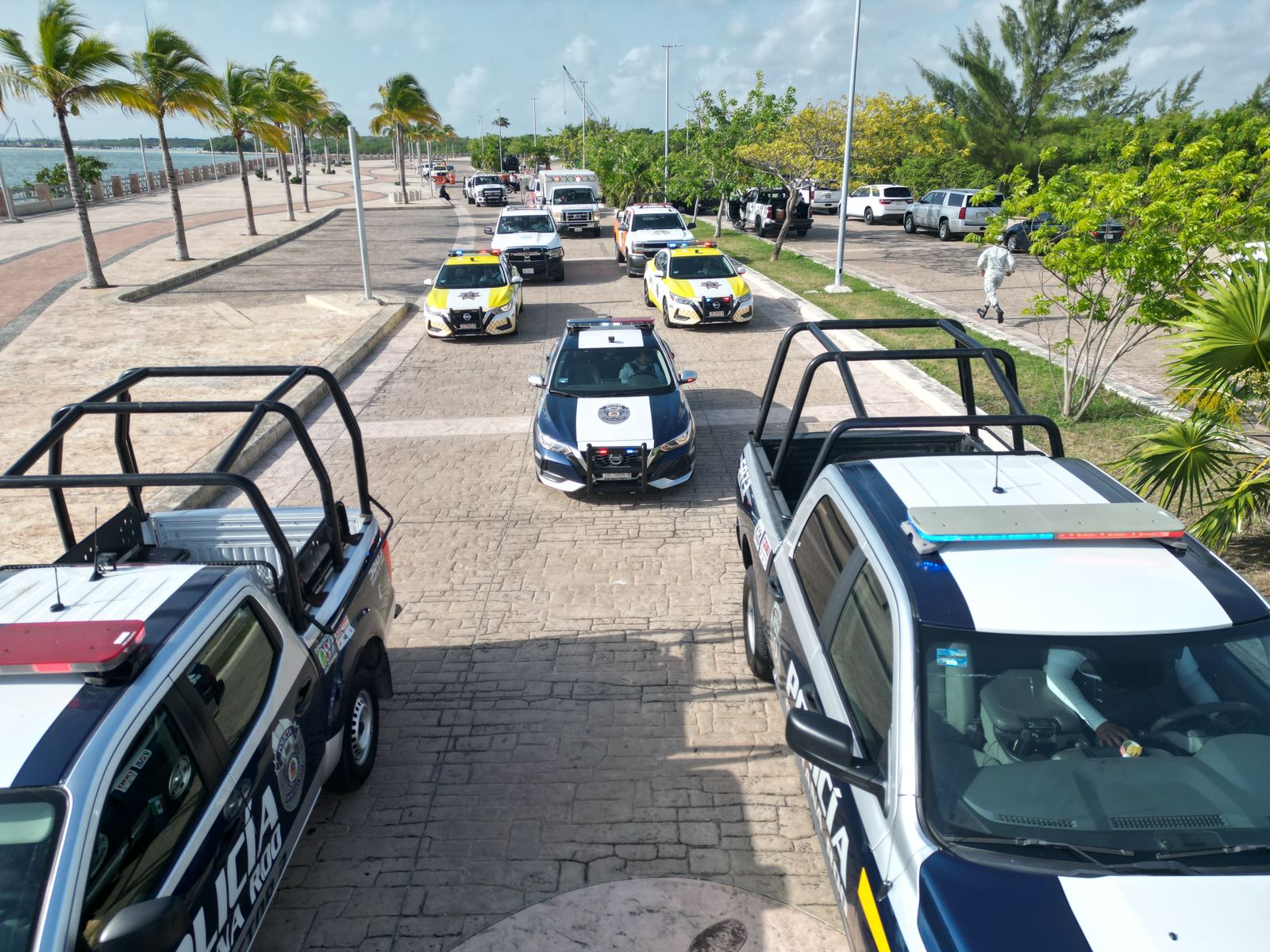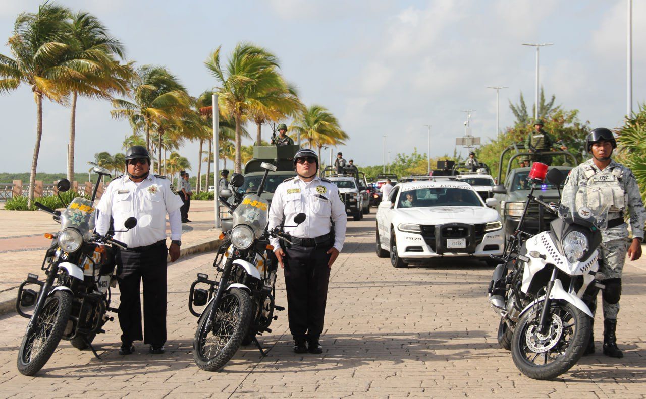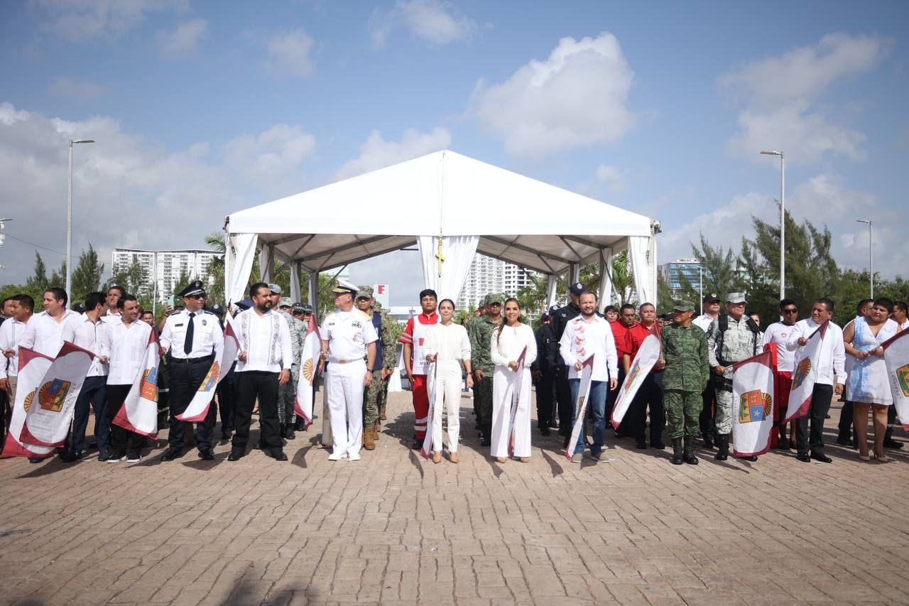 Una vez finalizado el protocolo oficial, la Presidenta Municipal, como las demás autoridades, participó agitando una bandera con el escudo de Quintana Roo, para dar paso al despliegue de vehículos de varias corporaciones como motocicletas, patrullas y camionetas de la Guardia Nacional, del Ejército Mexicano, de la Policía Estatal de Caminos, Fiscalía General del Estado, Policía Quintana Roo, Policía turística, Tránsito Municipal, Protección Civil, ambulancias de la Cruz Roja delegación Cancún, carro bombas y Unidad de Rescate Urbano de Bomberos, además de unidades de Ángeles Verdes, en tanto sobrevoló el helicóptero policiaco.
