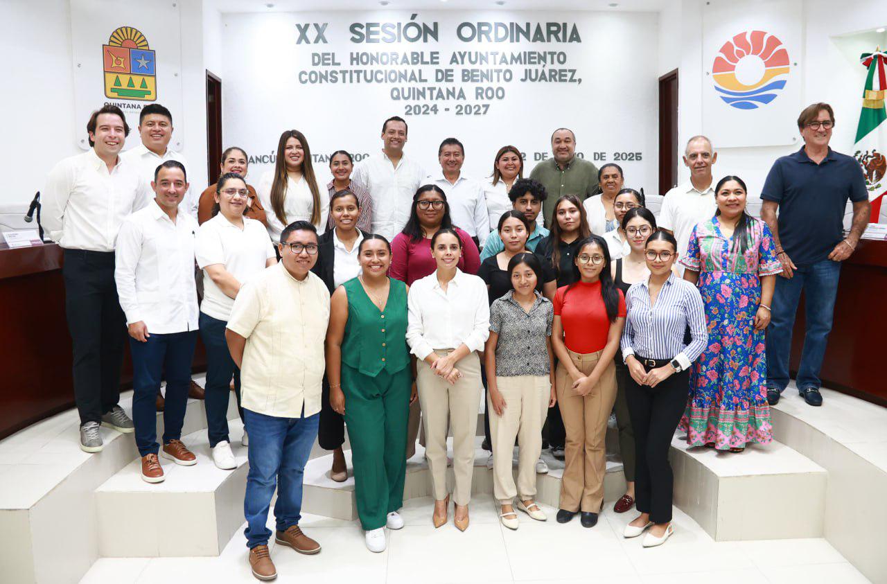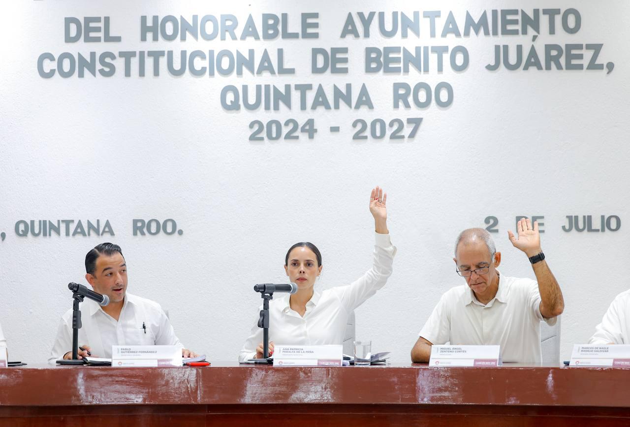 Cancún, Q. R., a 02 de julio de 2025.- En un día histórico y como acto de justicia social, en el marco de la Vigésima Sesión Ordinaria, encabezada por la Presidenta Municipal, Ana Paty Peralta, el Cabildo de Benito Juárez aprobó por unanimidad el programa de regularización sobre la tenencia de 16 mil lotes en las Supermanzanas 77, 96, 97, 99, 100, 101, 102, 103 y 235, lo que beneficiará a más de 80 mil cancunenses.