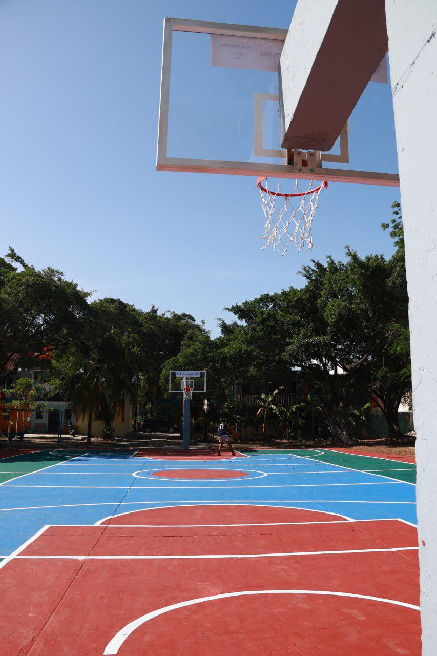 Detalló que parte de esta intervención fue con la finalidad de que las niñas, niños y jóvenes que forman parte del equipo de básquetbol “Huracanes”, cuenten con infraestructura deportiva de calidad y puedan ejercer el correcto desarrollo de su disciplina.