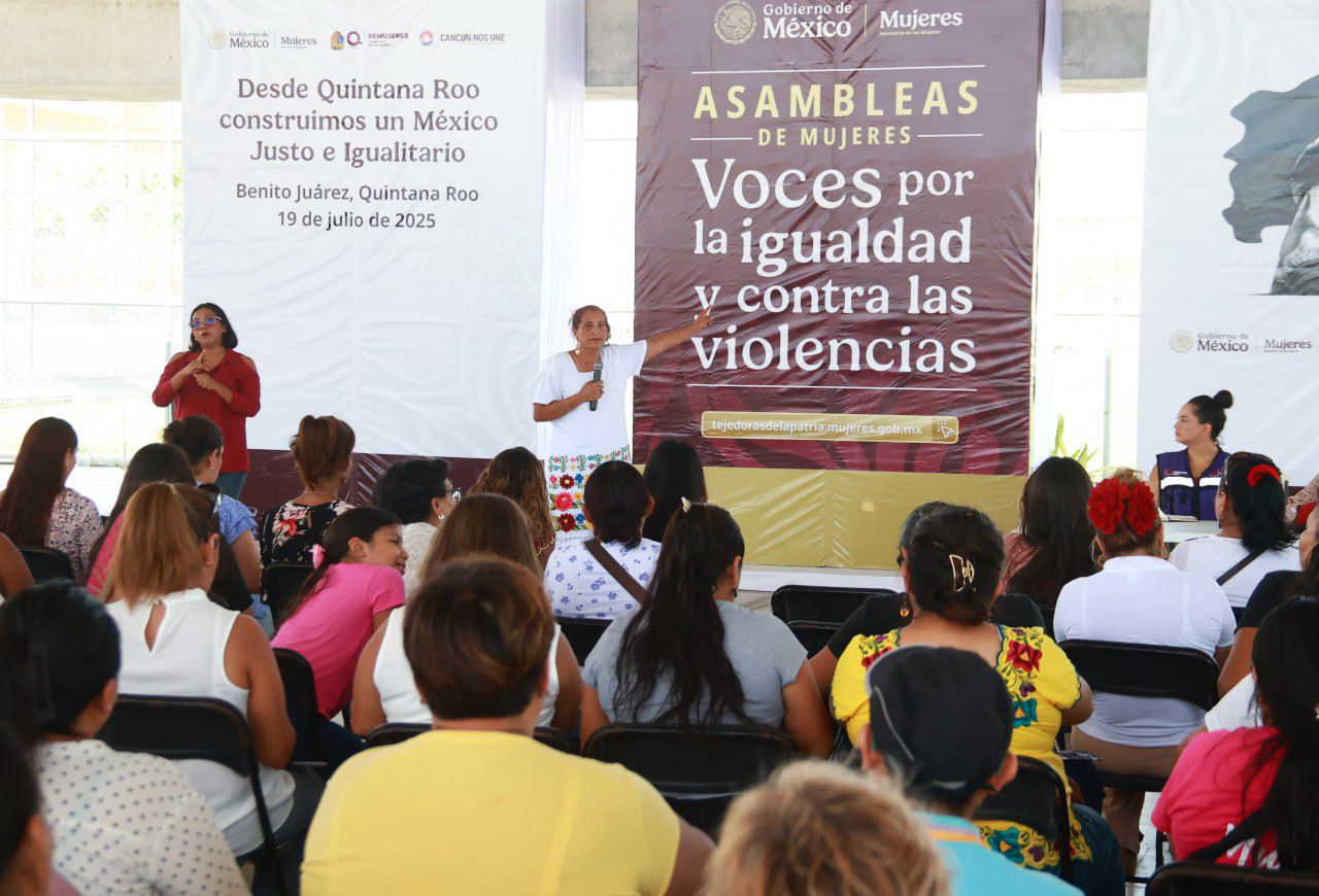 Cancún, Q. R., 19 de julio de 2025.- Como parte de su compromiso con el bienestar de las mujeres de Cancún, la Presidenta Municipal, Ana Paty Peralta, participó en la Asamblea de Mujeres “Voces por la Igualdad y contra las Violencias”, reafirmando su respaldo e impulso a las causas de las mujeres y alineándose con las políticas públicas del Gobierno de México y del Gobierno del Estado de Quintana Roo.