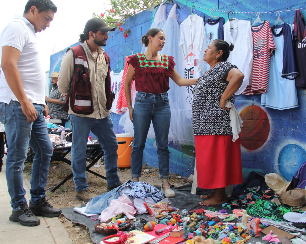 En el recorrido junto con directores municipales y regidores benitojuarenses, la Primera Autoridad Municipal saludó a las personas quienes realizaban sus compras e inclusive, platicó entre otros con los vendedores de ropa y artículos de segunda mano, además de comprar una pulsera hecha por manos artesanales y brindar palabras de orgullo a un niño que vende aguas frescas con su papá, no sin antes reiterarle que siga estudiando para que sea un cancunense profesionista.