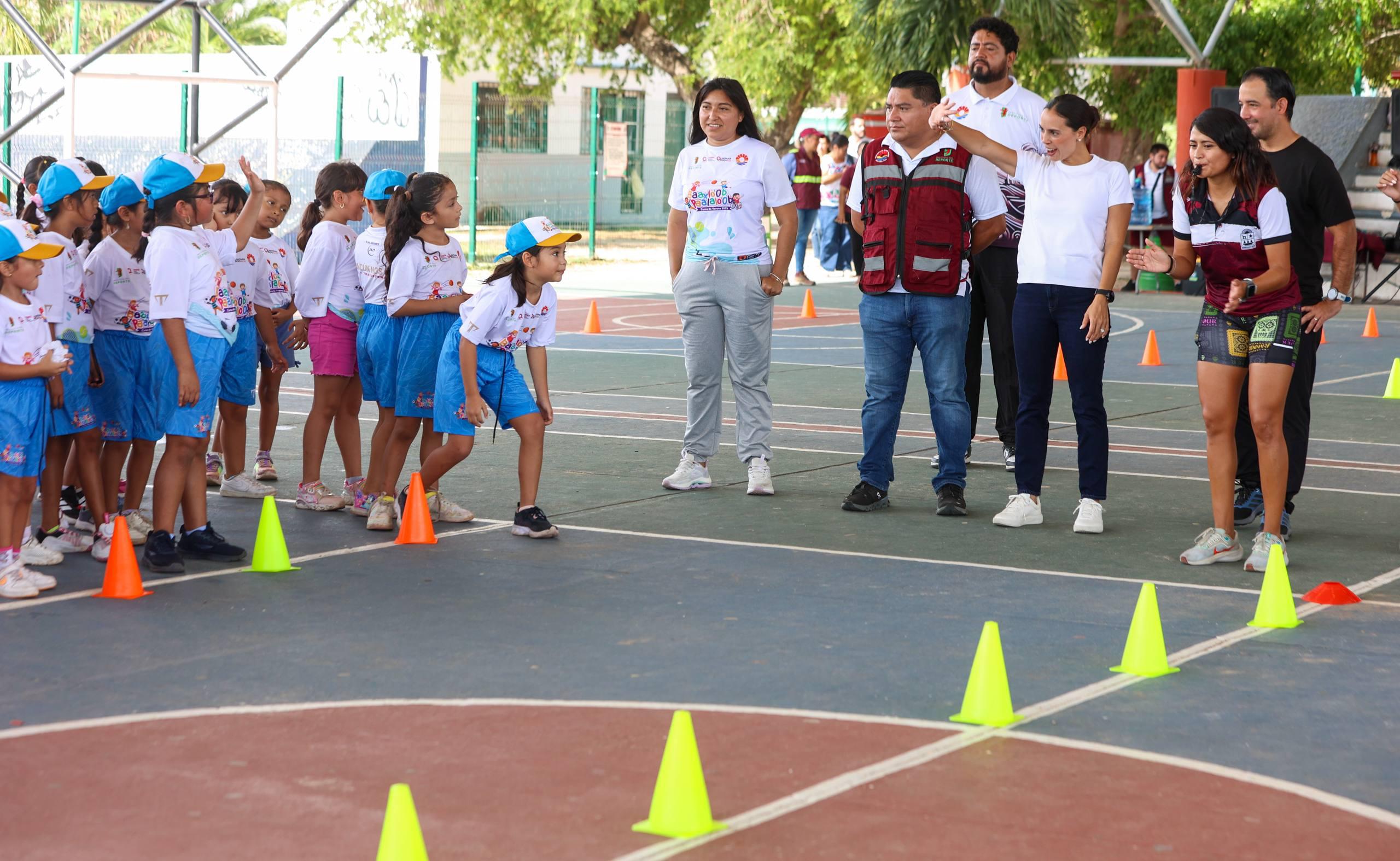 Cancún, Q. R., a 28 de julio de 2025.- La Presidenta Municipal, Ana Paty Peralta, convivió con 470 niñas y niños que forman parte del curso de verano “Baaxlo ’ob Paalalo’ob” en su XXX edición 2025, que cada año se realiza a través del Instituto del Deporte, con la finalidad de destacar y potenciar la gran variedad de talento en el ámbito deportivo y a su vez, promover la integración comunitaria.