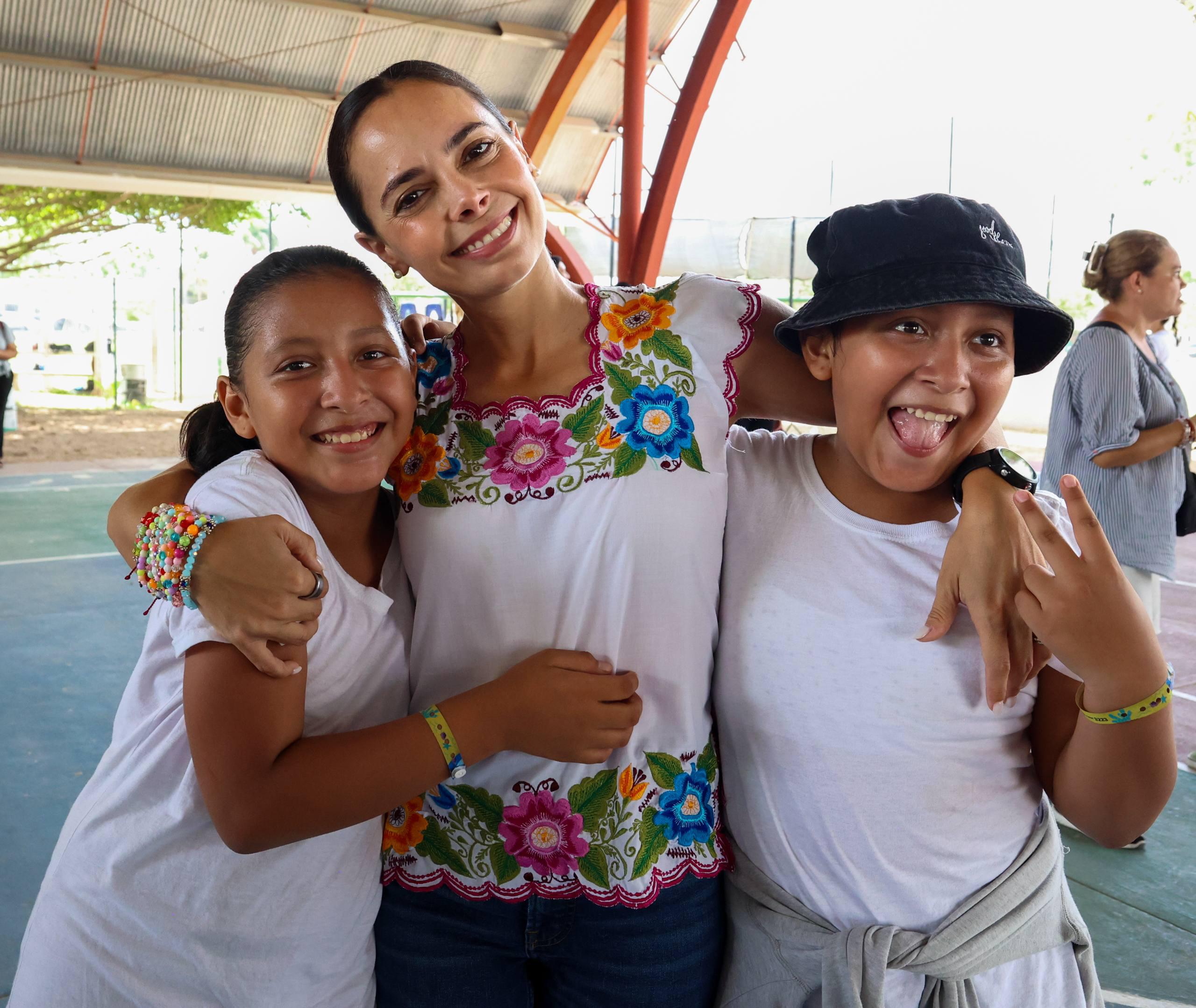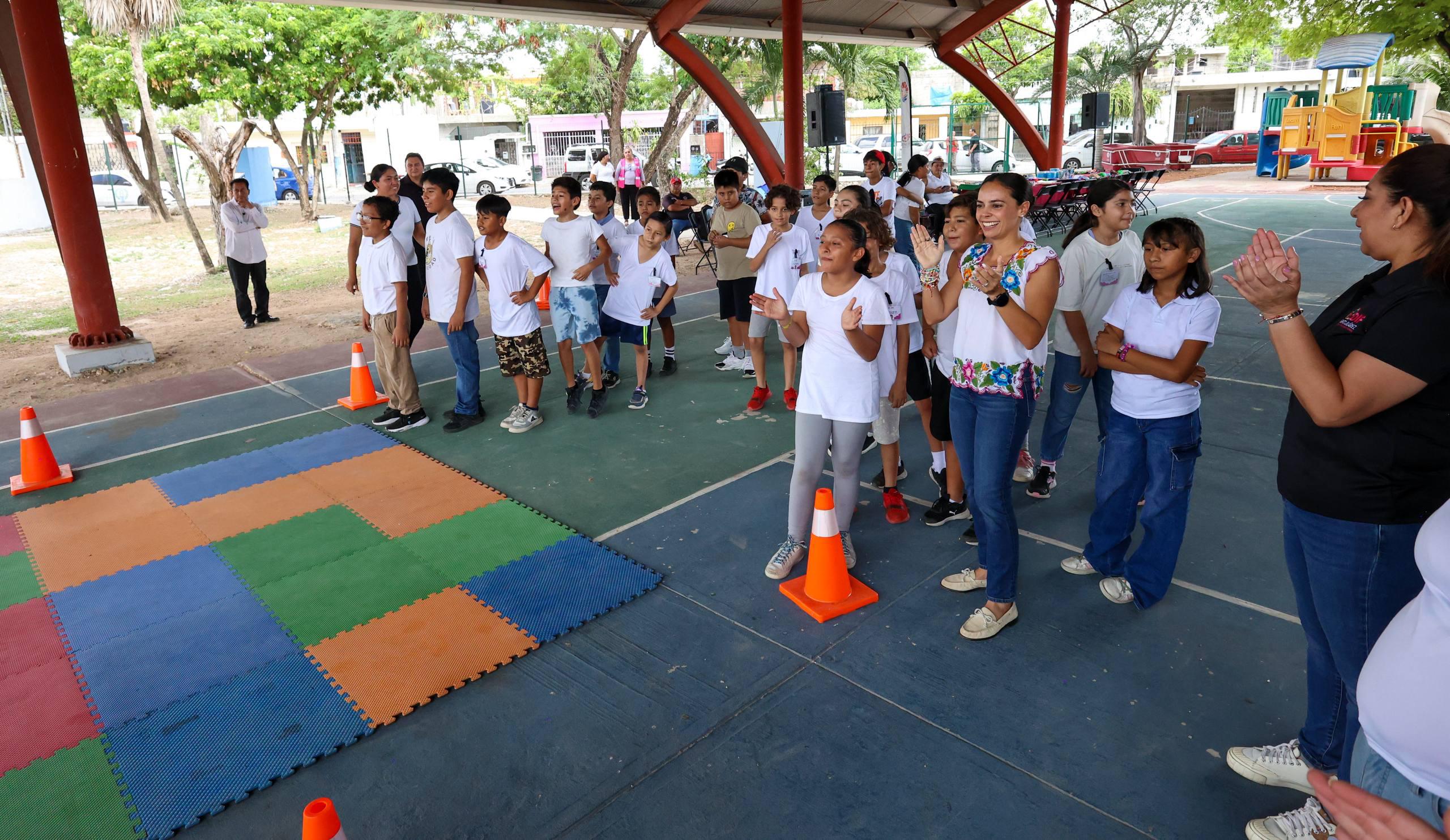Recibida cálidamente por los pequeños con abrazos y sonrisas en el domo de la Supermanzana 94 frente al DIF Benito Juárez, la Primera Autoridad Municipal participó en las dinámicas y circuitos diseñados para los diferentes grupos de edad de los participantes entre los 8 y 13 años de edad.