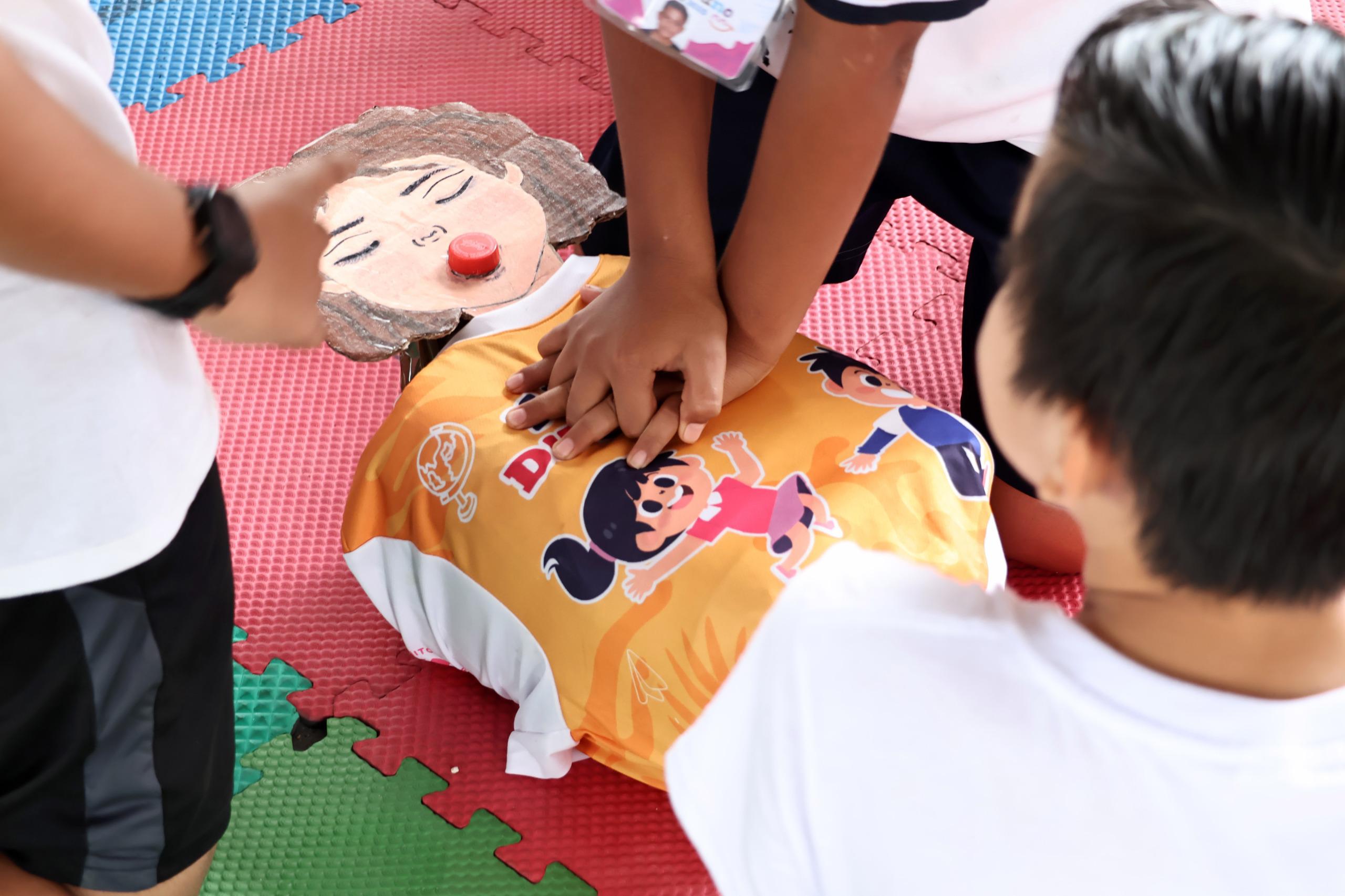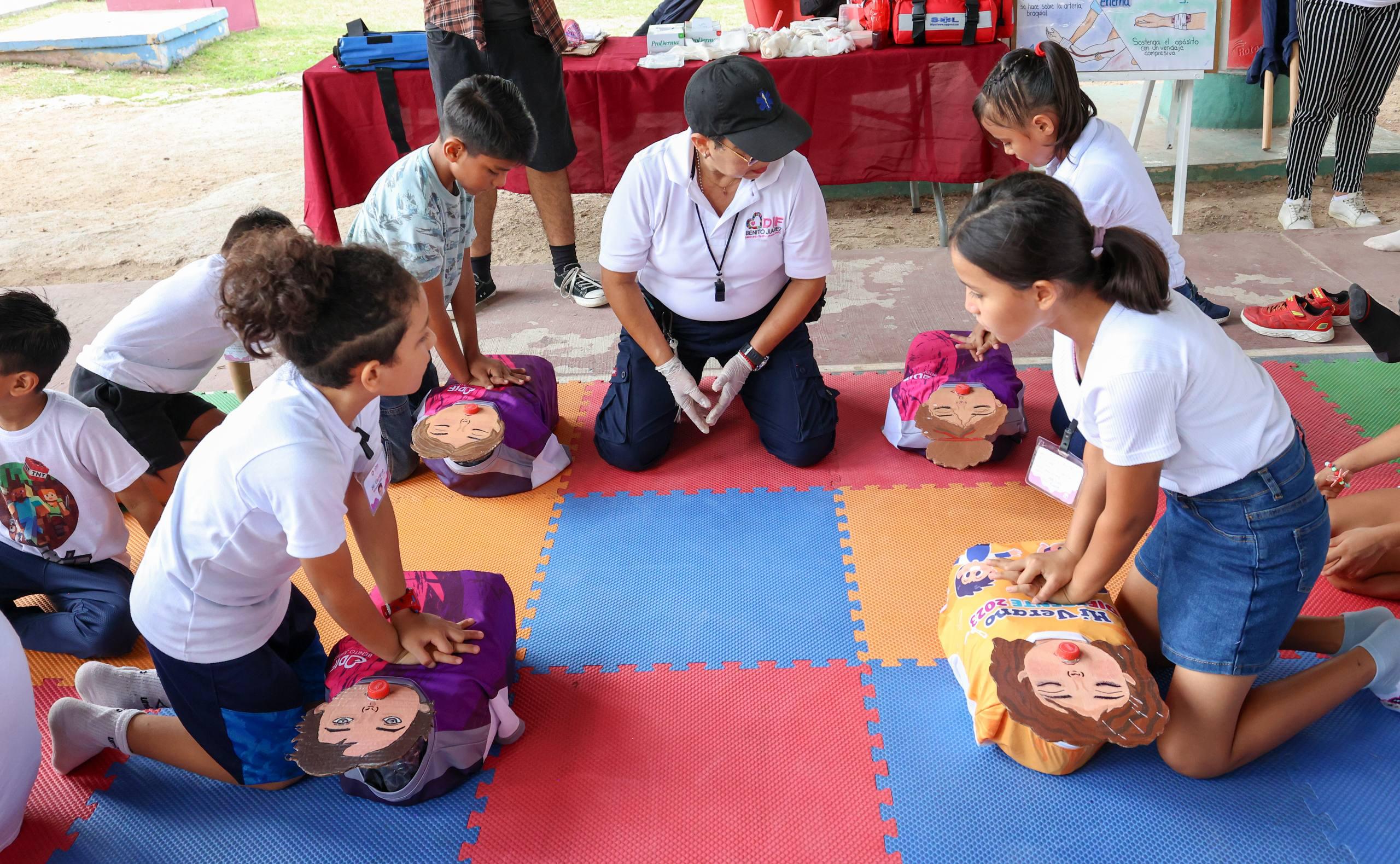 Como ejemplo, además de compartir alimentos con las niñas, niños y adolescentes durante su hora de almuerzo, Ana Paty Peralta escuchó la capacitación sobre primeros auxilios y prevención de accidentes; y después acudió al taller de manualidades, siembra de semillas y llaveros.