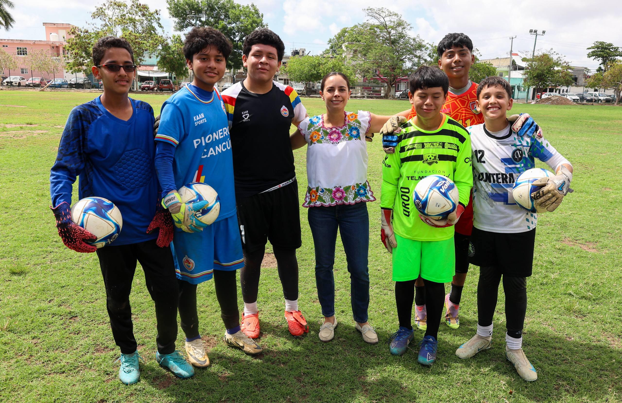 Acompañada por la directora del DIF Benito Juárez, Marisol Sendo Rodríguez; y el regidor presidente de la Comisión de Desarrollo Social, Participación Ciudadana y Derechos Humanos, Marcos Basilio Saldívar, la Primera Autoridad Municipal también convivió con el equipo Caribeños DIF que se encontraba practicando futbol en el campo de esa unidad deportiva, a quienes exhortó a seguirse preparando para alcanzar el éxito en esa disciplina.