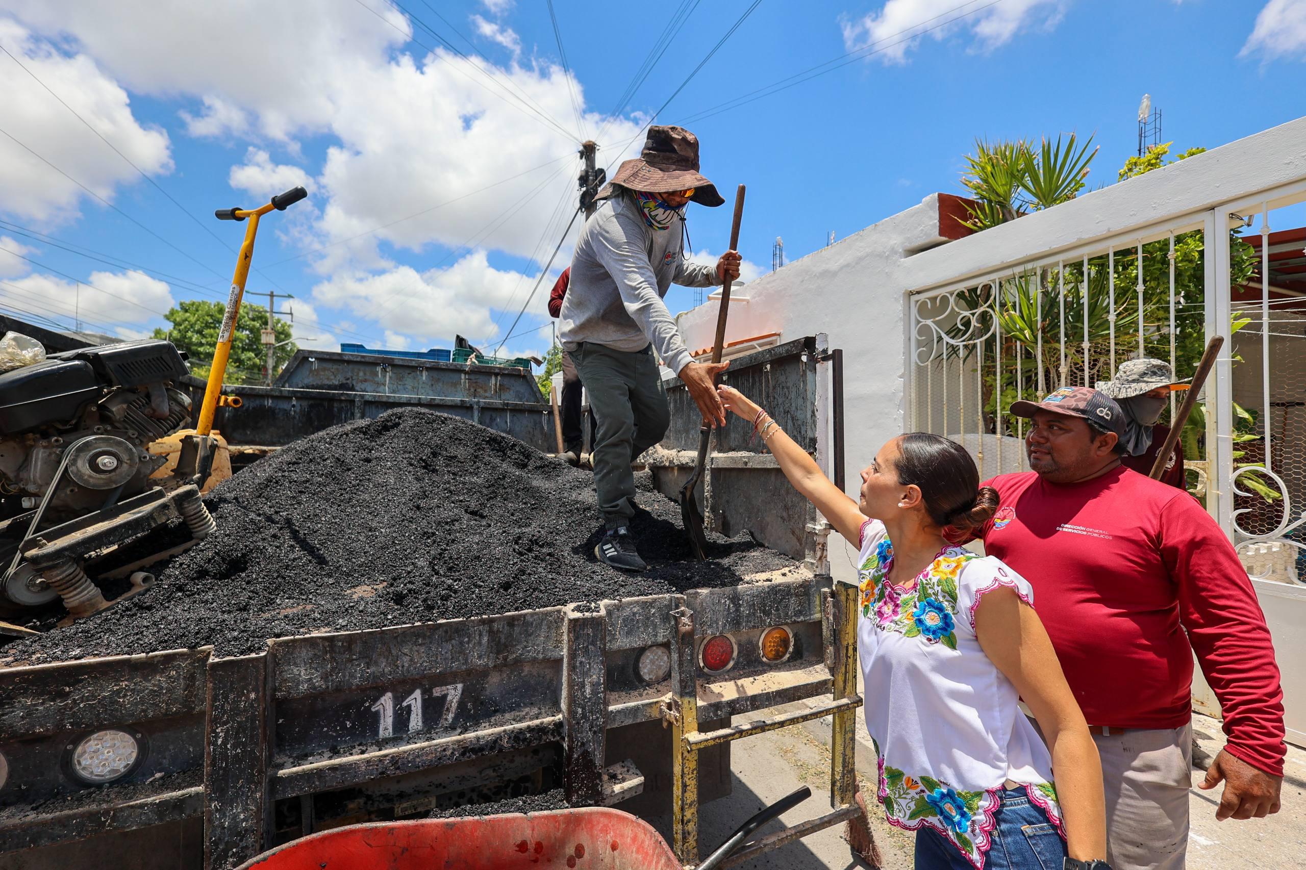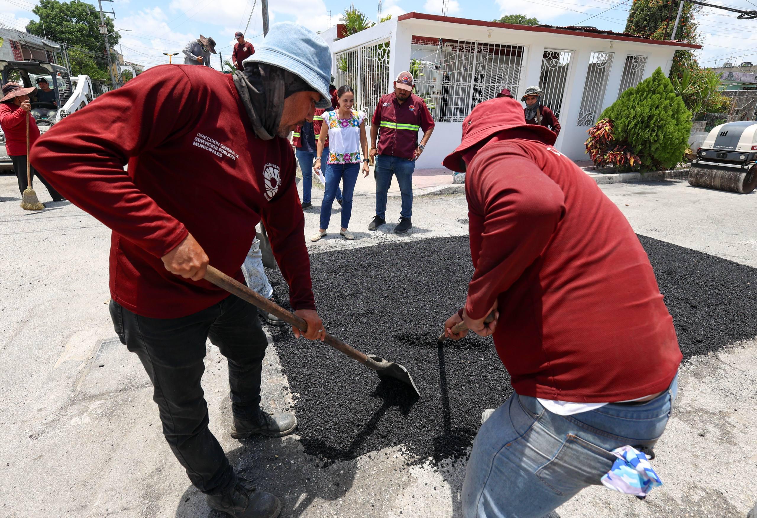 Cancún, Q. R., a 31 de julio de 2025.- La Presidenta Municipal, Ana Paty Peralta, supervisó los trabajos de bacheo con maquinaria en la Supermanzana 101, donde ratificó el compromiso con la ciudadanía de contar con vialidades en óptimas condiciones para mejorar la seguridad vial y la afluencia de vehículos en la zona.
