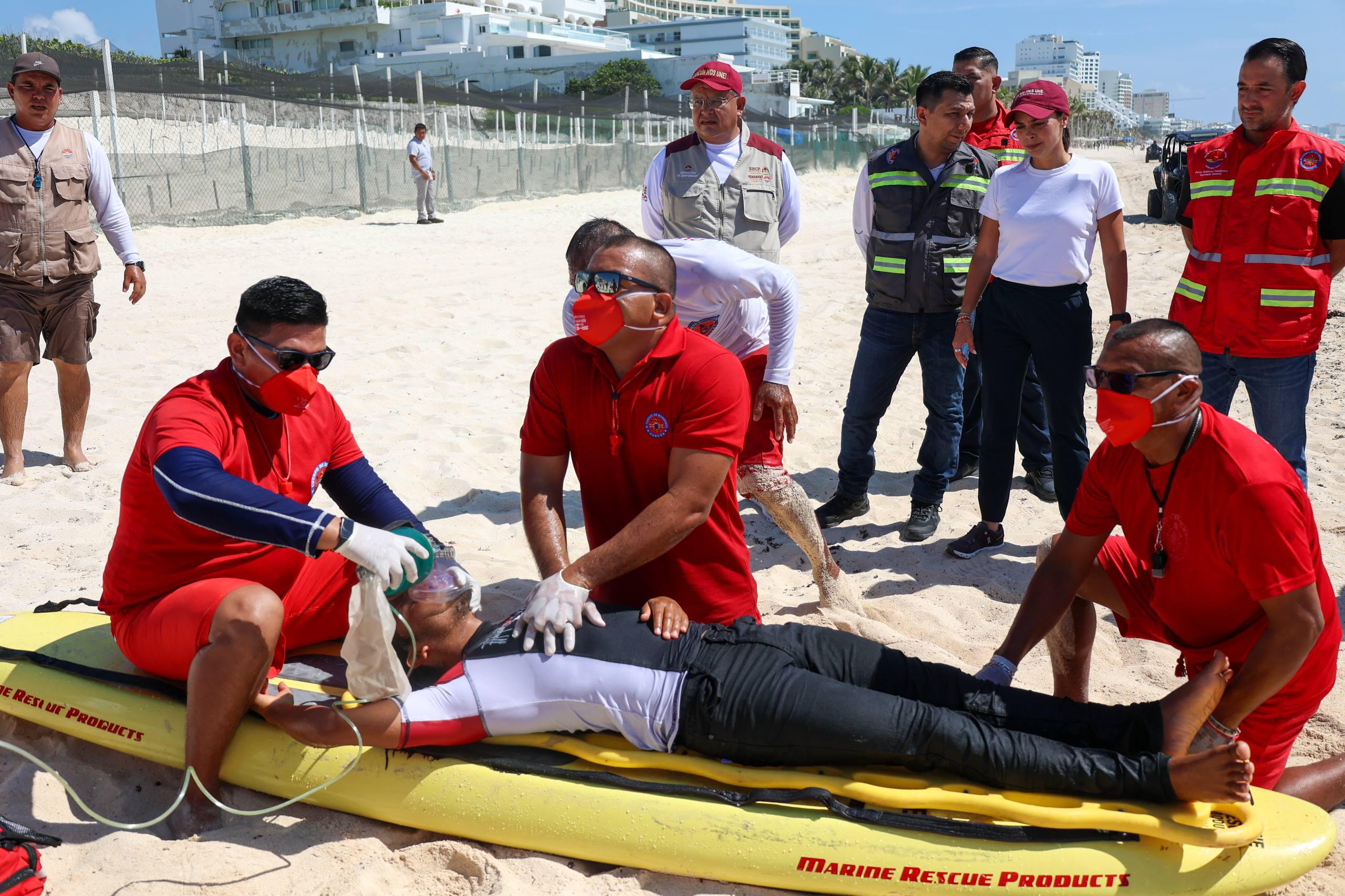 simulacro de salvamento múltiple en Playa Marlín, en el que participaron
