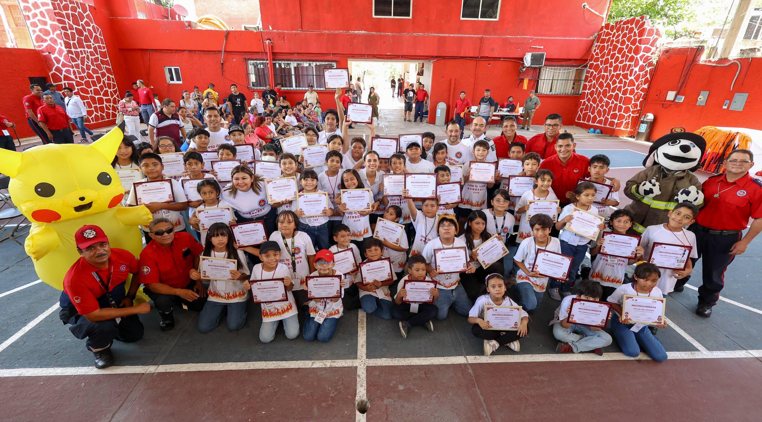Cancún, Q. R., a 01 de agosto de 2025.- “Cada uno de ustedes es sumamente valioso, es único e irrepetible y puede lograr ser lo que quieran cuando crezcan. Que nunca se les olvide eso. En este curso de verano les enseñaron algunas de las acciones que hacen los bomberos, pero ustedes pueden ser héroes y heroínas realizando todos los días buenas acciones”, dijo la Presidenta Municipal, Ana Paty Peralta, al encabezar la clausura del curso de verano 2025 “Mis Primeros pasos para ser un Héroe”.