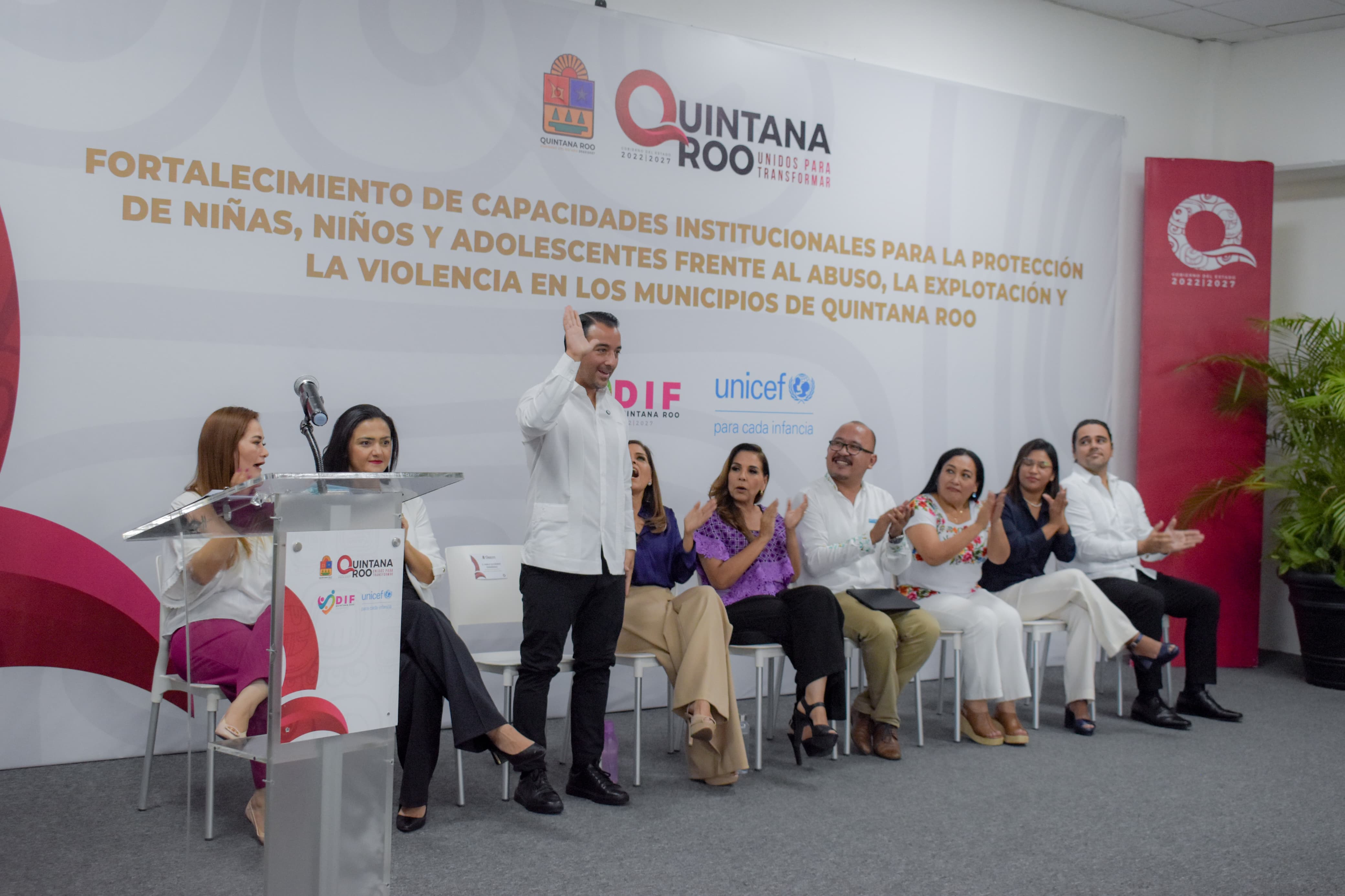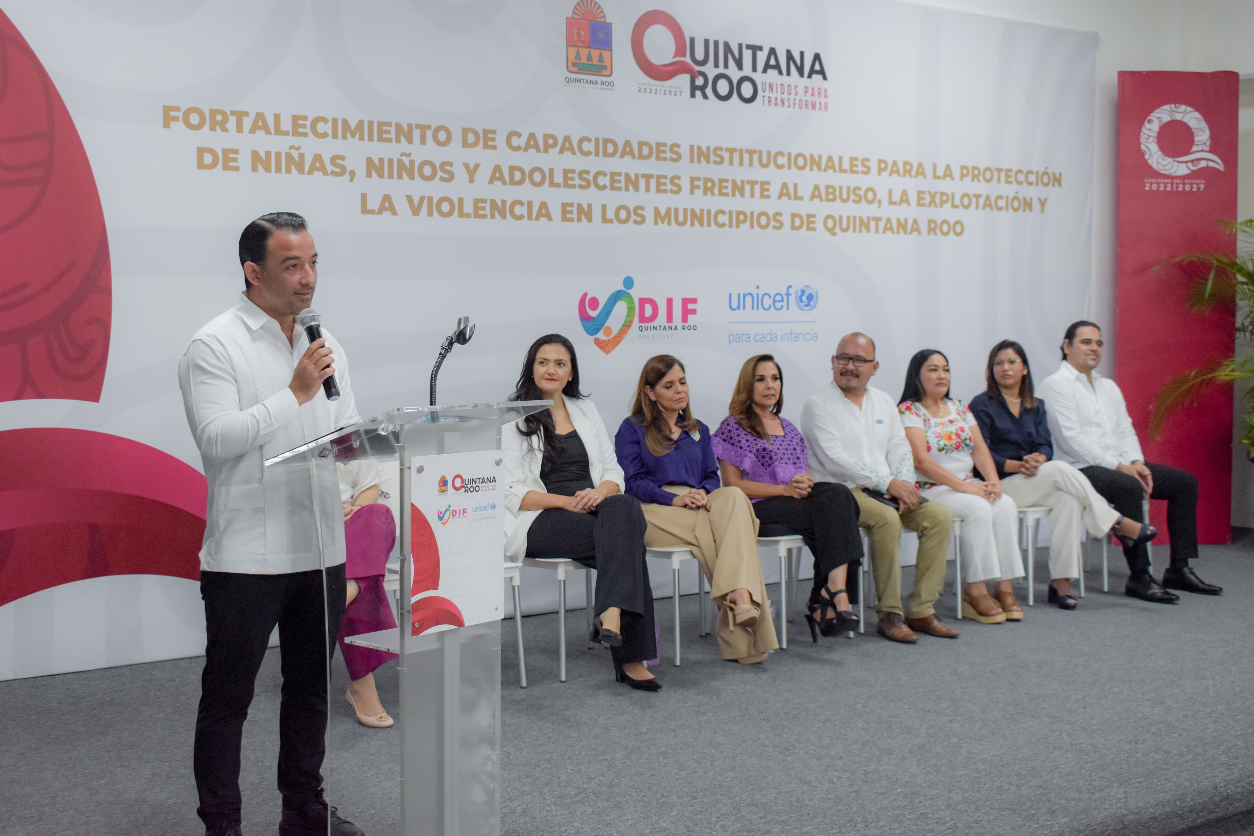 Durante el evento también participaron el Oficial Nacional de Protección a la Infancia de UNICEF México, José Antonio Ruiz; la directora general del DIF estatal, Abril Cristina Sabido Alcérreca; la magistrada Teresa de Jesús Villa Velasco; la secretaria de Educación, Elda Xix Euán; la diputada Euterpe Gutiérrez Valasis y el rector de la UT Cancún, Enrique Baños Abedun.