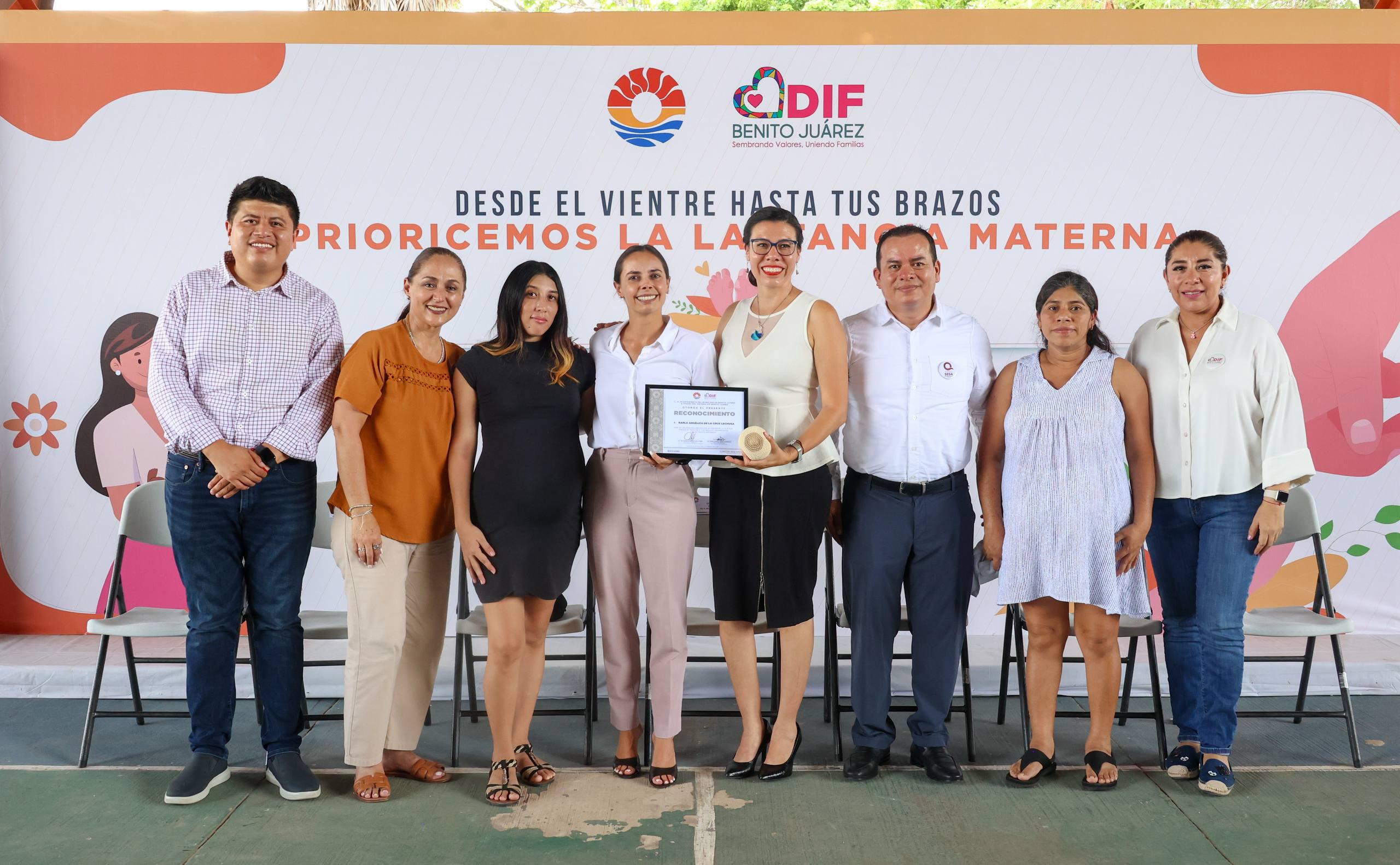 También otorgó un reconocimiento a Karla Angélica de la Cruz Lechuga, por su contribución con la plática: “Desde el vientre a tus brazos, prioricemos la lactancia materna”, en el que previamente compartió con las asistentes diferentes temas como: maternidad, sueño infantil, masaje infantil, porteo ergonómico, entre otros.