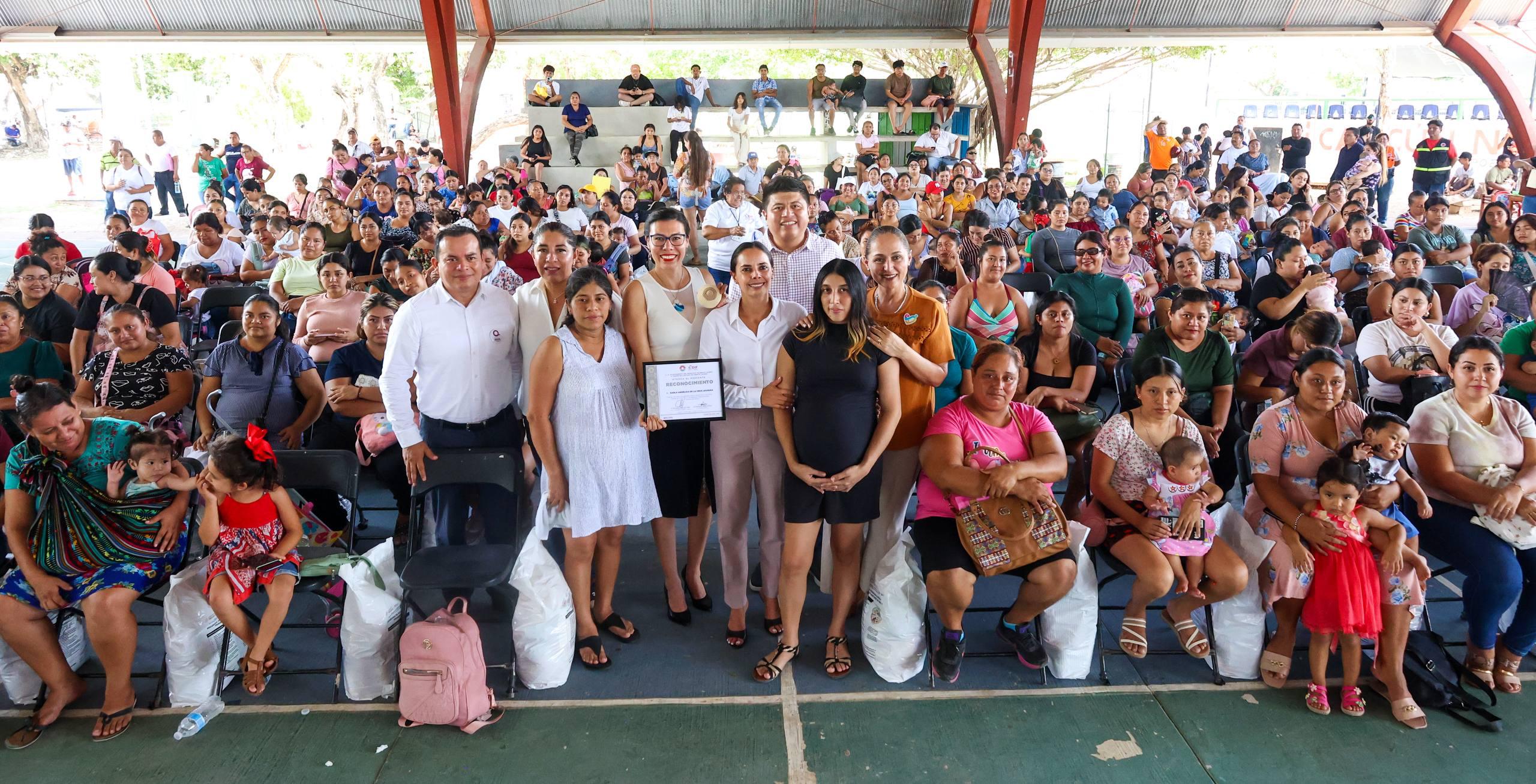 Como parte del evento, la Presidenta Municipal entregó de forma simbólica a las féminas lactantes Maribel del Carmen García Vidal y Addy Aurora Caamal Ruiz, los apoyos alimentarios que incluyen alimentos balanceados de la canasta básica, como arroz, frijoles, avena, atún, entre otros, así como el ejemplo del Plato del Buen Comer, así como la recomendación de priorizar la leche materna durante los primeros seis meses de vida del infante para que absorba todos los nutrientes necesarios.