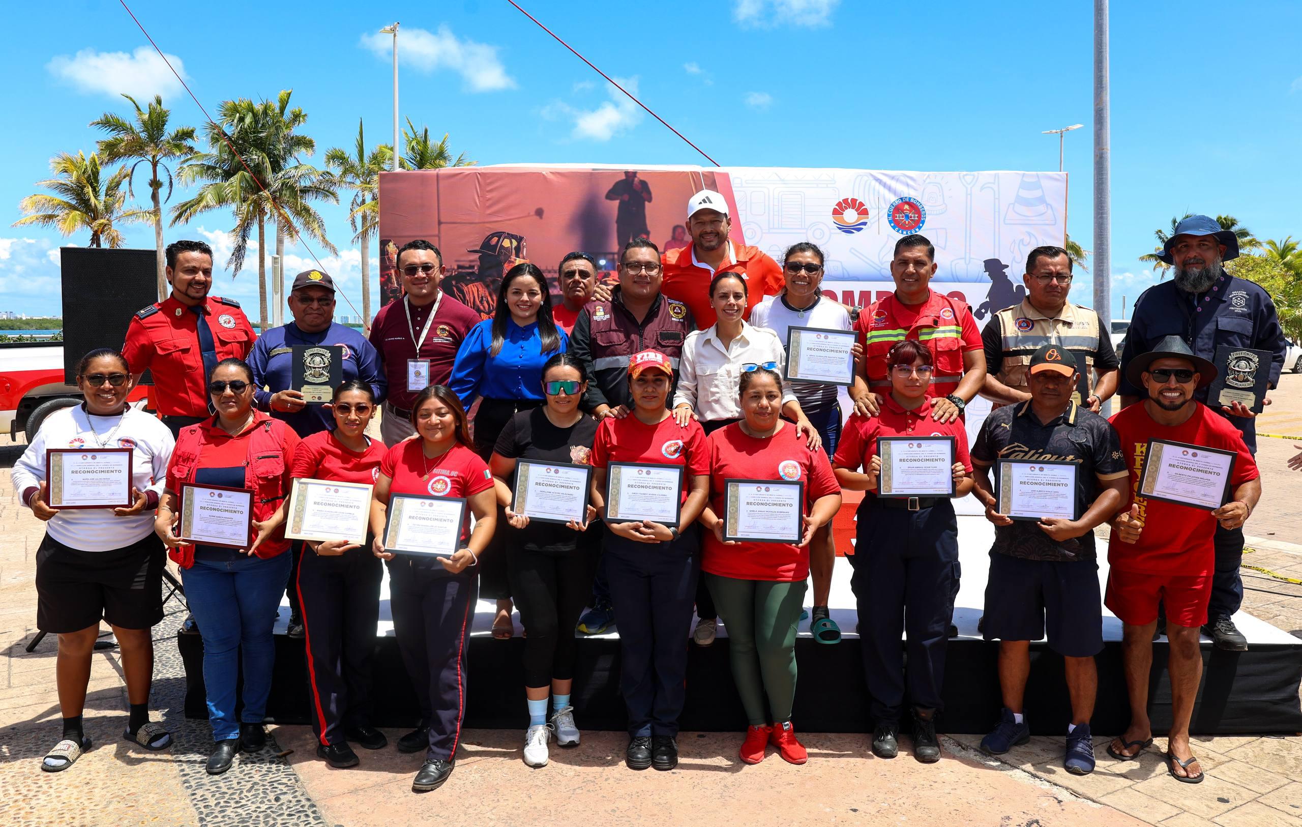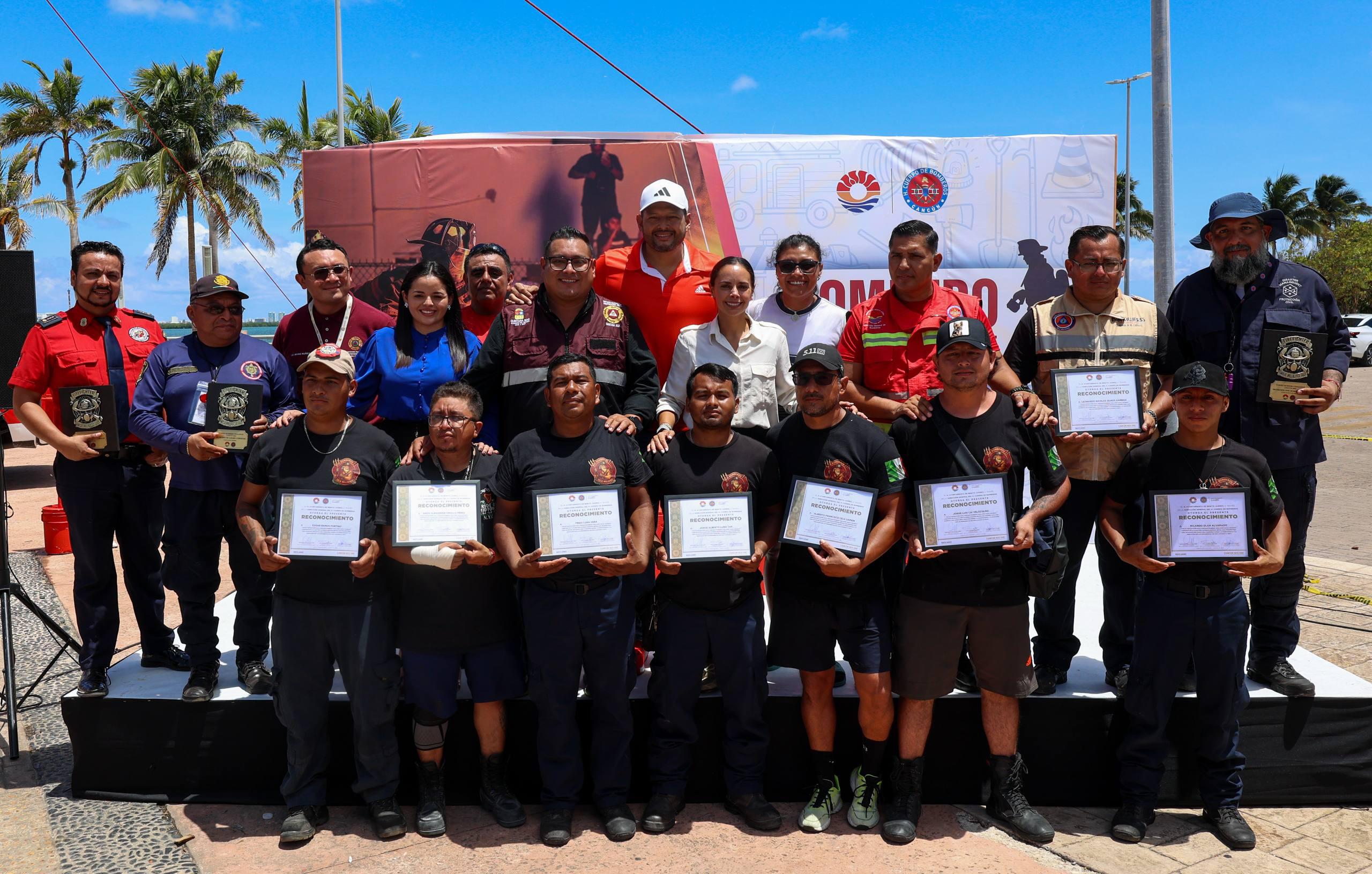 Entre los municipios participantes en el “Bombero Challenge 2025” destacan: Isla Mujeres, Puerto Morelos y Lázaro Cárdenas, siendo Cancún la sede de este importante encuentro bomberil, quienes compitieron en las categorías: Libre, Máster y Femenil, desempeñando los retos físicos de entrada forzada, arrastre de llanta, traslado de maniquí, precisión con chorro de agua, circuito zigzag de extintor, levantamiento de manguera con cuerda, escalada de pisos con manguera al hombro y arrastre de línea para chorro.