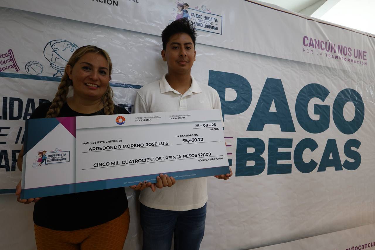 Cancún, Q. R., a 25 de agosto de 2025.- El Ayuntamiento de Benito Juárez, que encabeza la Presidenta Municipal, Ana Paty Peralta, a través de la Secretaría Municipal de Bienestar y la Dirección General de Educación, inició con el pago de más de 3 mil becas para estudiantes de escuelas públicas de los niveles Especial, Preescolar, Primaria, Secundaria, Media Superior y Superior, beneficiando a la economía de las familias cancunenses y combatiendo la deserción escolar.