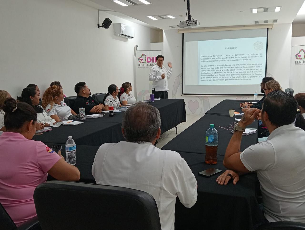 Cancún, Q. R., a 27 de agosto de 2025.- Como parte de la campaña “Cero Corrupción”, el Ayuntamiento de Benito Juárez, a través de la Contraloría Municipal, llevó a cabo una capacitación a los directores del Sistema DIF Benito Juárez, en las instalaciones de la dependencia en la Supermanzana 94.